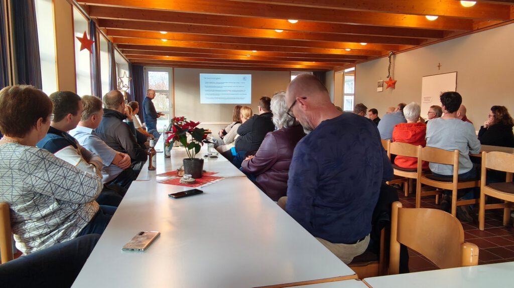 Dechant Jörg Hagemann informierte Vertreter der in Goxel tätigen Vereine und Ehrenamtler am 12.12.25 über Überlegungen der Kirchengemeinde zur Entwicklung der Immobilienstruktur in Herz Jesu Goxel. Ausgangspunkt war, dass nach einer Begehung des Herz Jesu Kindergartens durch Fachleute des Bistums beschlossen wurde, den Kindergarten durch einen Neubau zu ersetzen, die vorhandene Altbausubstanz ist wirtschaftlich nicht auf aktuellen Baustandart zu bringen. Daran angelehnt plant die Kirchengemeinde, auch für das in die Jahre gekommene und reparaturanfällige Pfarrzentrum einen Ersatz zu schaffen, sicherlich nicht so gross wie das jetzige Pfarrzentrum, dafür aber zukunftssicher aufgestellt.
