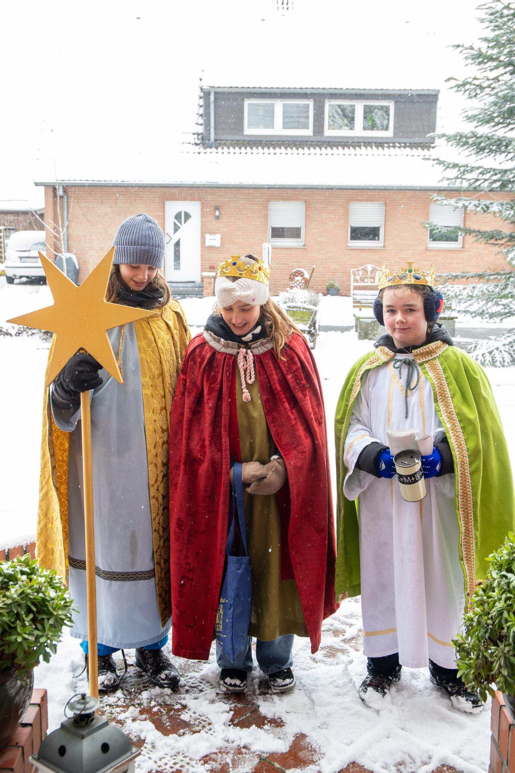 Auch in diesem Jahr waren die Sternsinger in Goxel wieder unterwegs, überbrachten Neujahrsgrüsse und sammelten Spenden. Der über Nacht frisch gefallene Schnee war kein Hindernis.