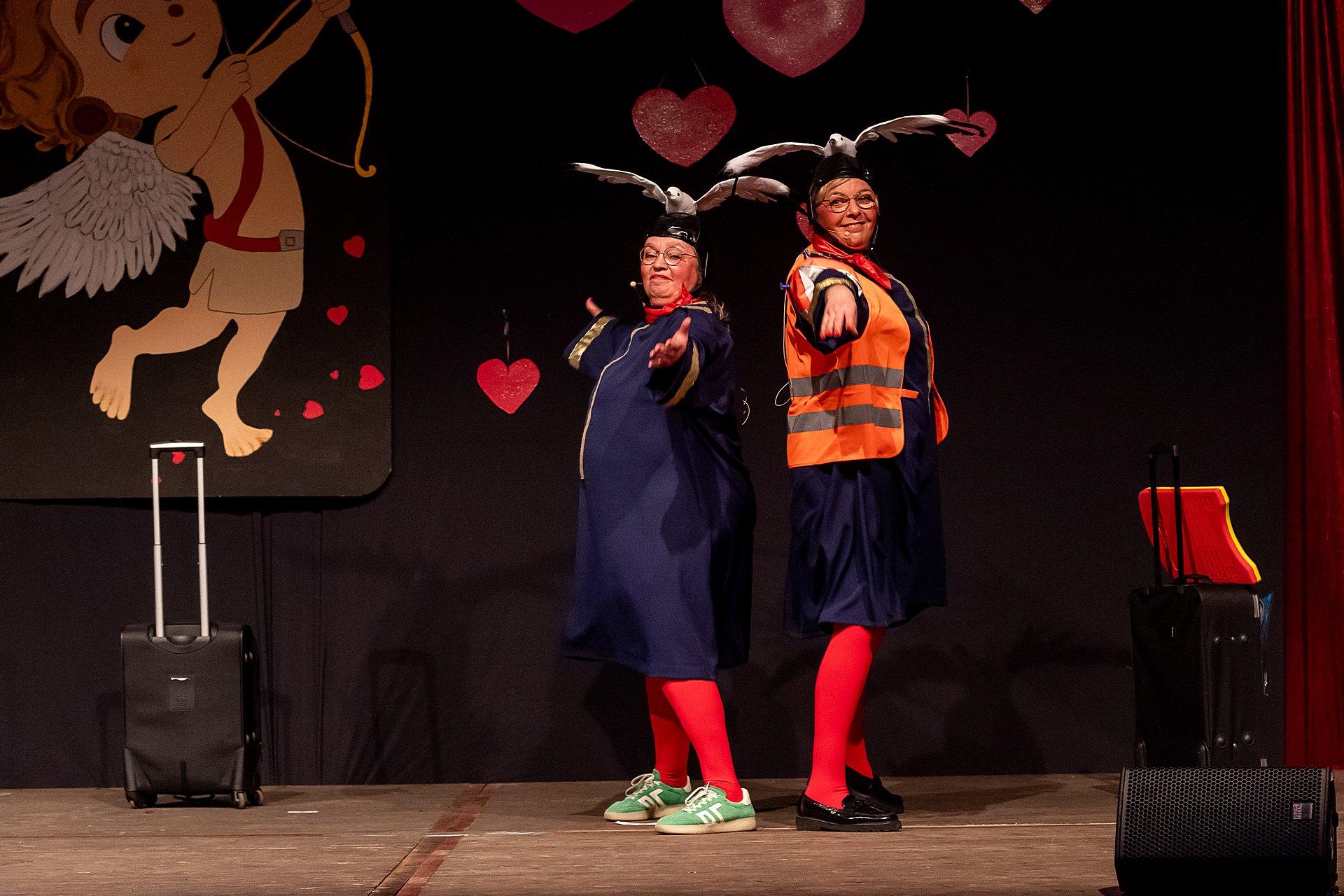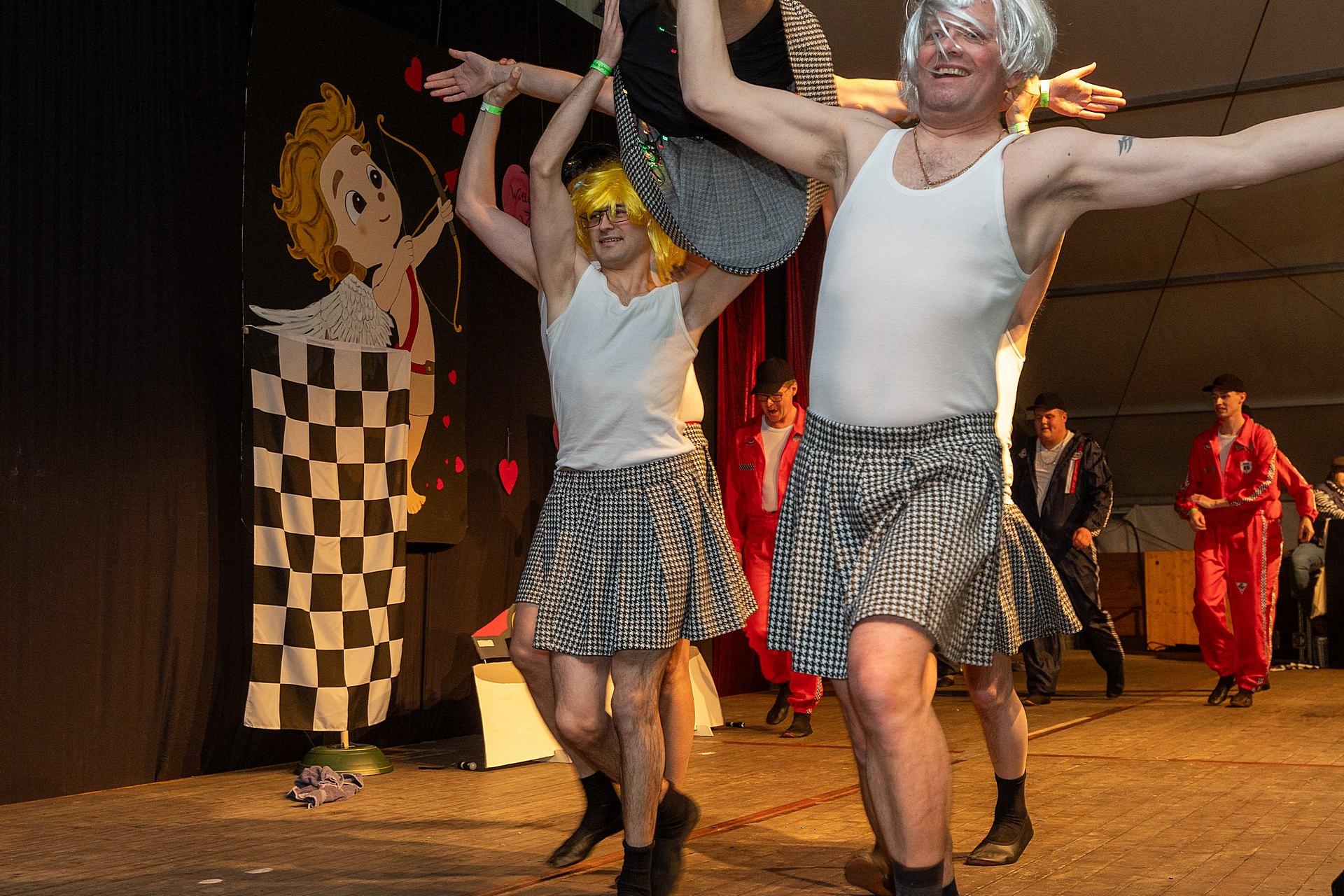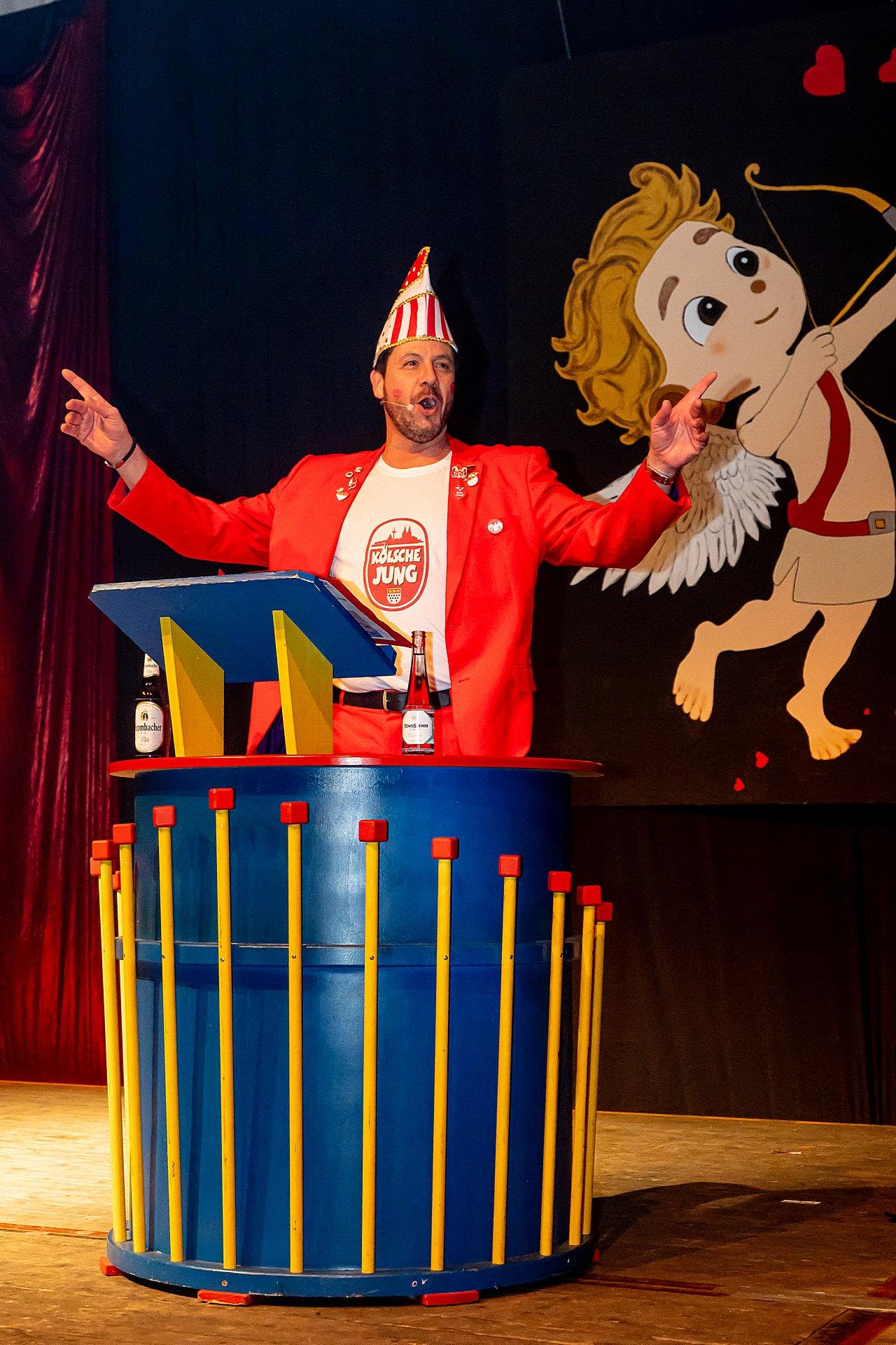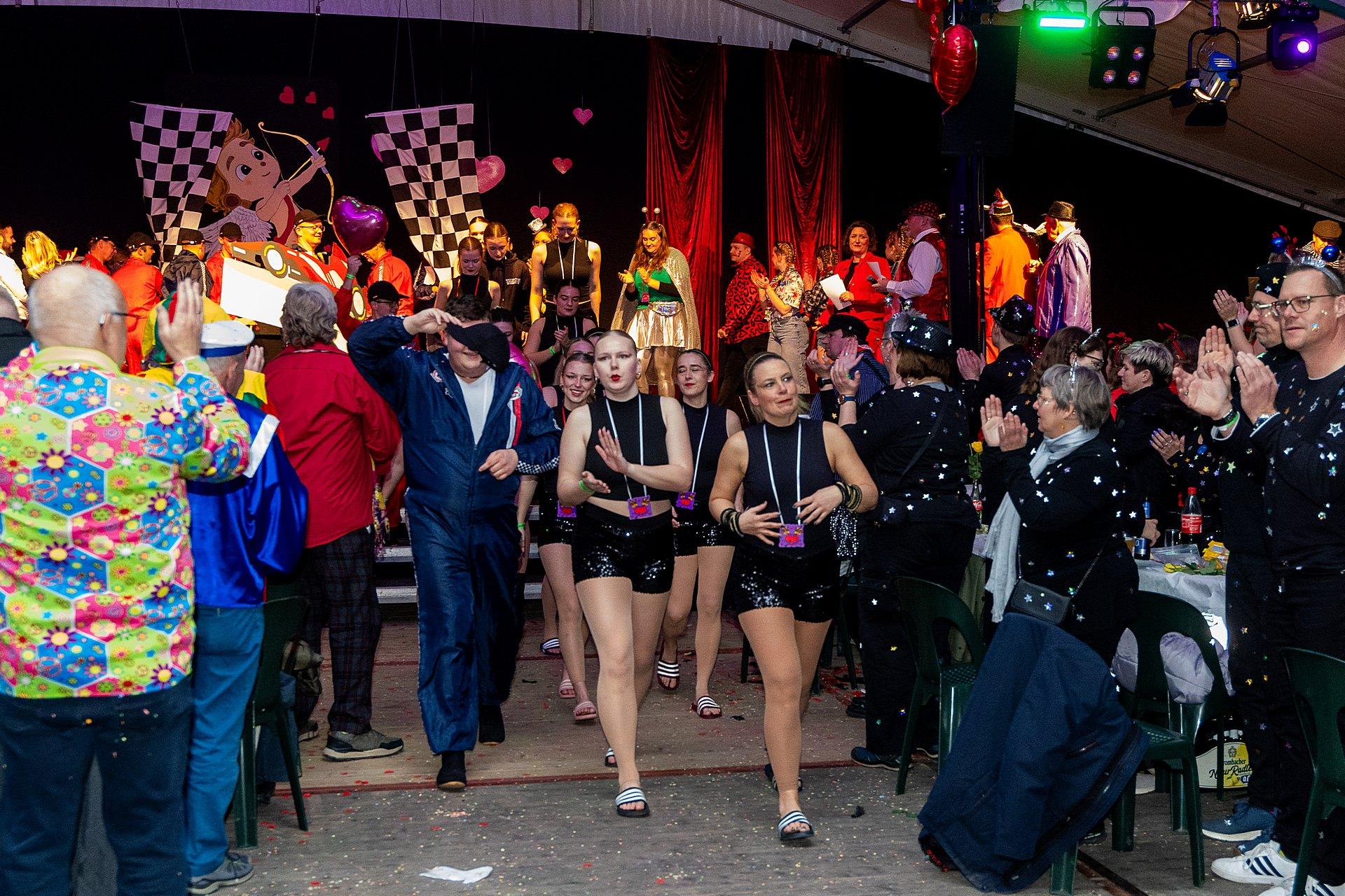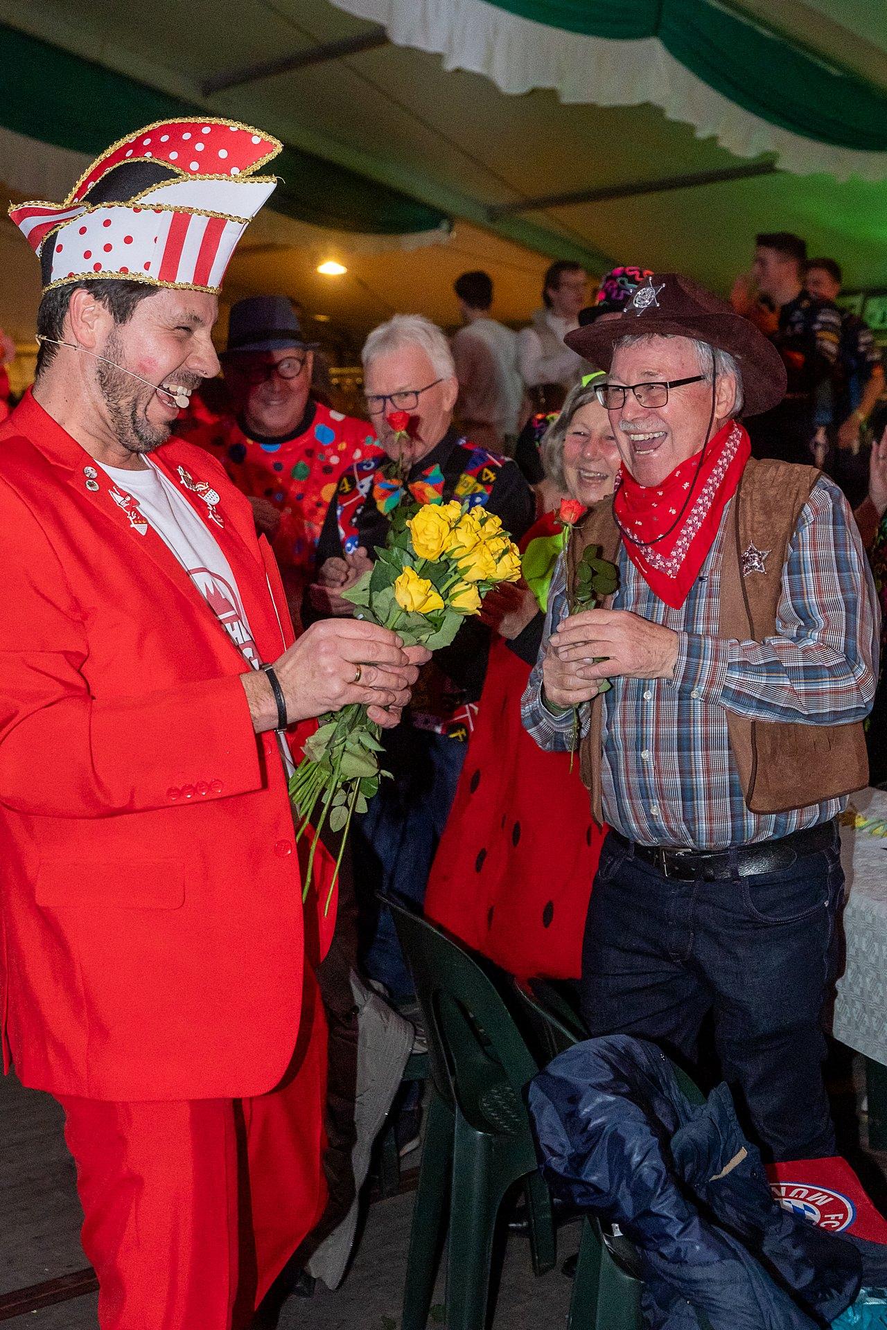 Der Abend stand unter dem Thema „Valentinstag“, Miriam und Markus traten dem Motto entsprechend in der Farbe „rot“ auf. Auch die Helfer hinter und auf der Bühne, die „Valentinos“ hatten sie dem Motto entsprechend in der Farbe Rot gekleidet. Valentino Herbert Gehlmann war vor wenigen Tagen 60 geworden, das ganze Zelt gratulierte ihm mit „Happy Birthday“.