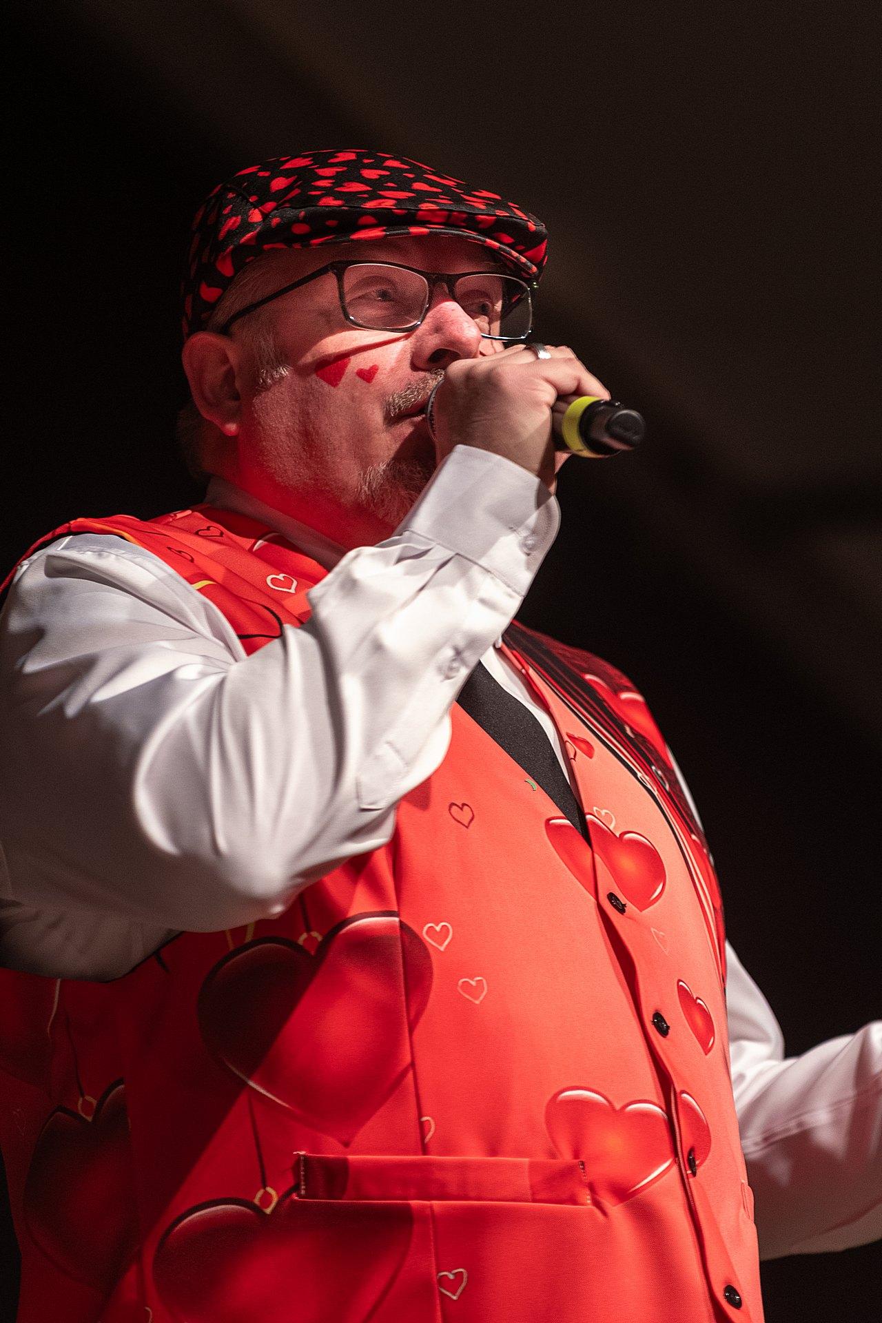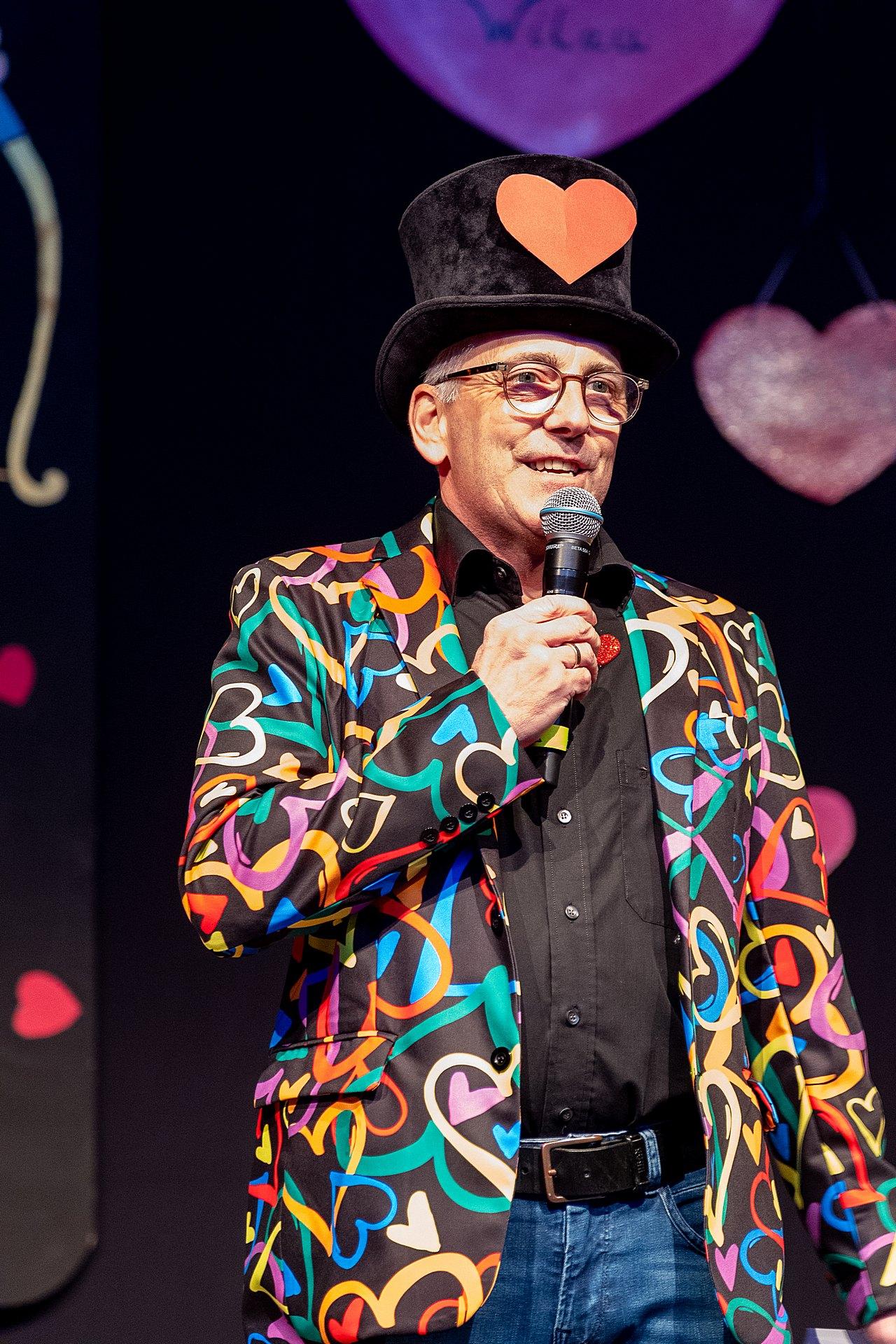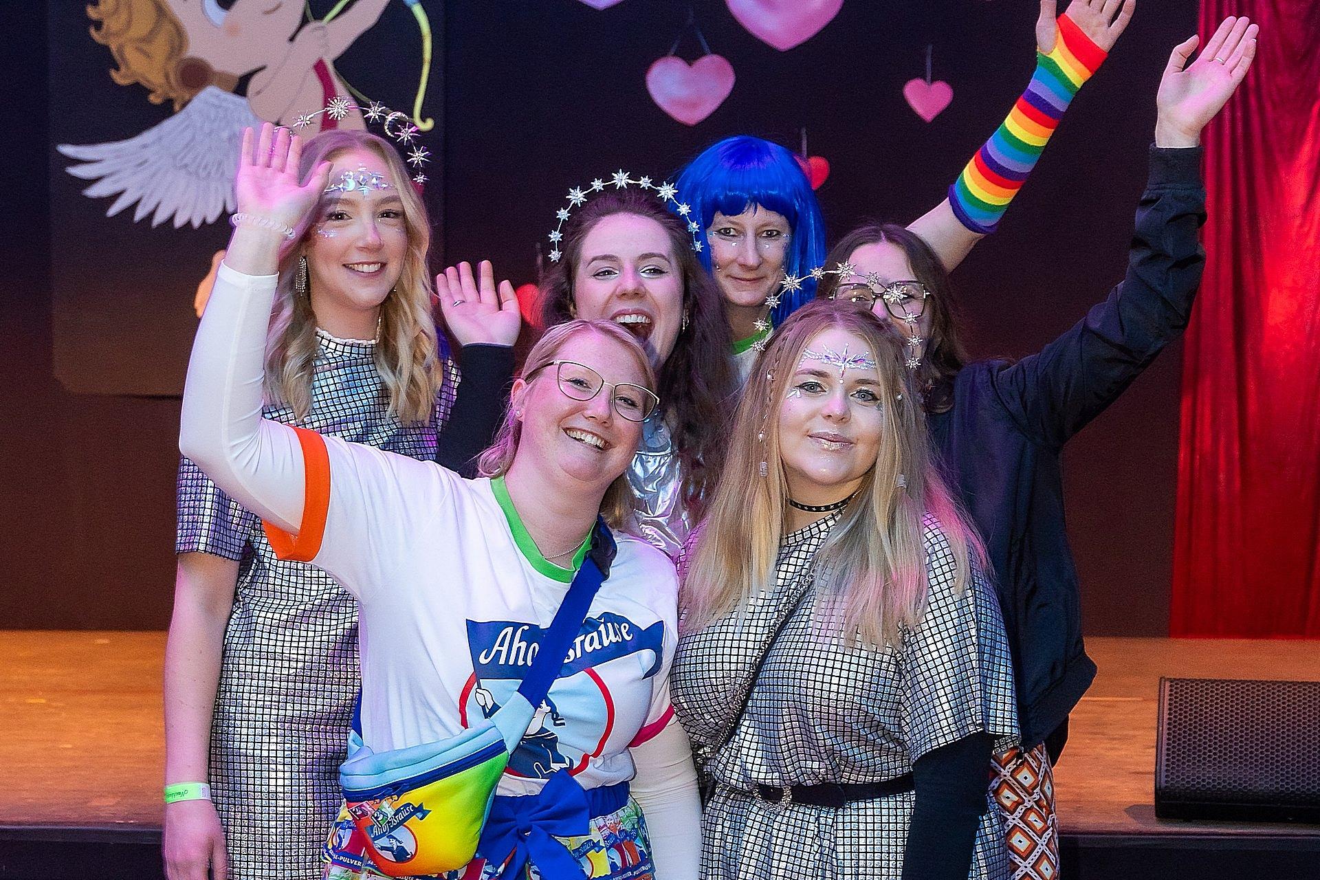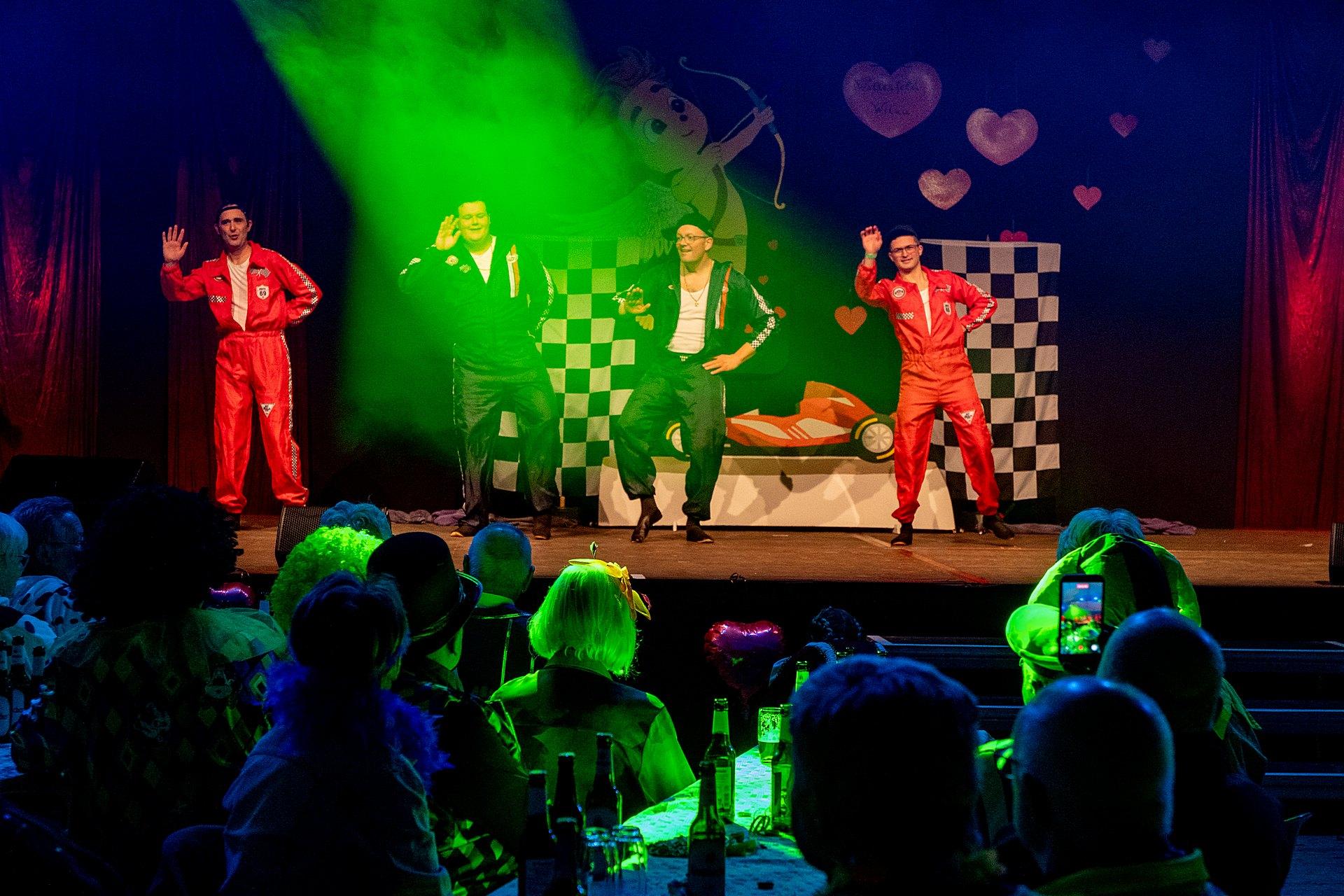 Der Abend stand unter dem Thema „Valentinstag“, Miriam und Markus traten dem Motto entsprechend in der Farbe „rot“ auf. Auch die Helfer hinter und auf der Bühne, die „Valentinos“ hatten sie dem Motto entsprechend in der Farbe Rot gekleidet. Valentino Herbert Gehlmann war vor wenigen Tagen 60 geworden, das ganze Zelt gratulierte ihm mit „Happy Birthday“.