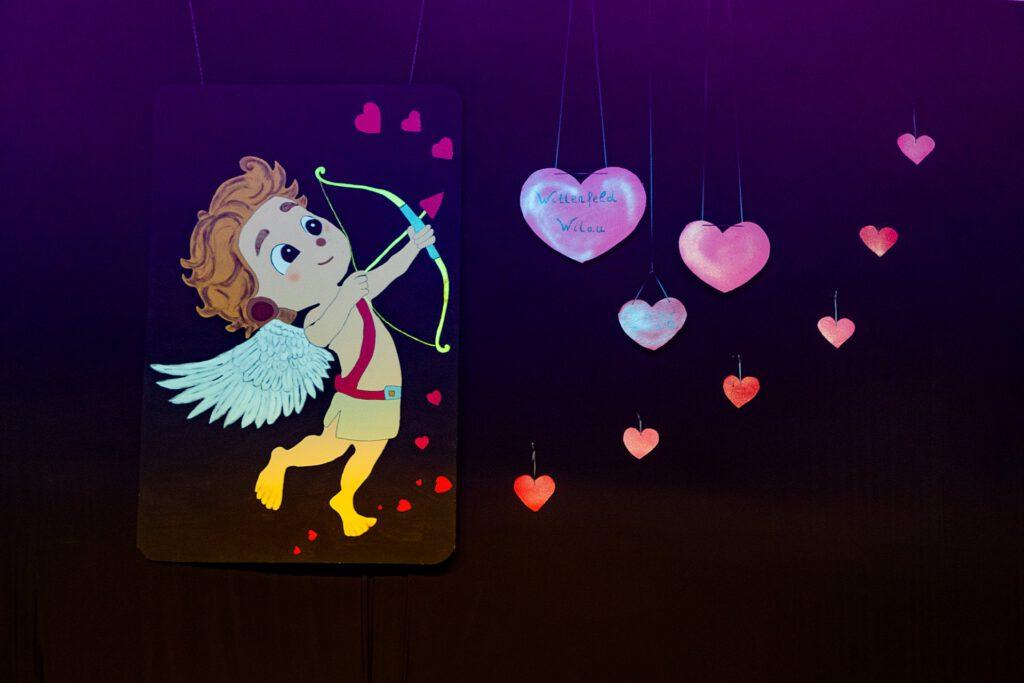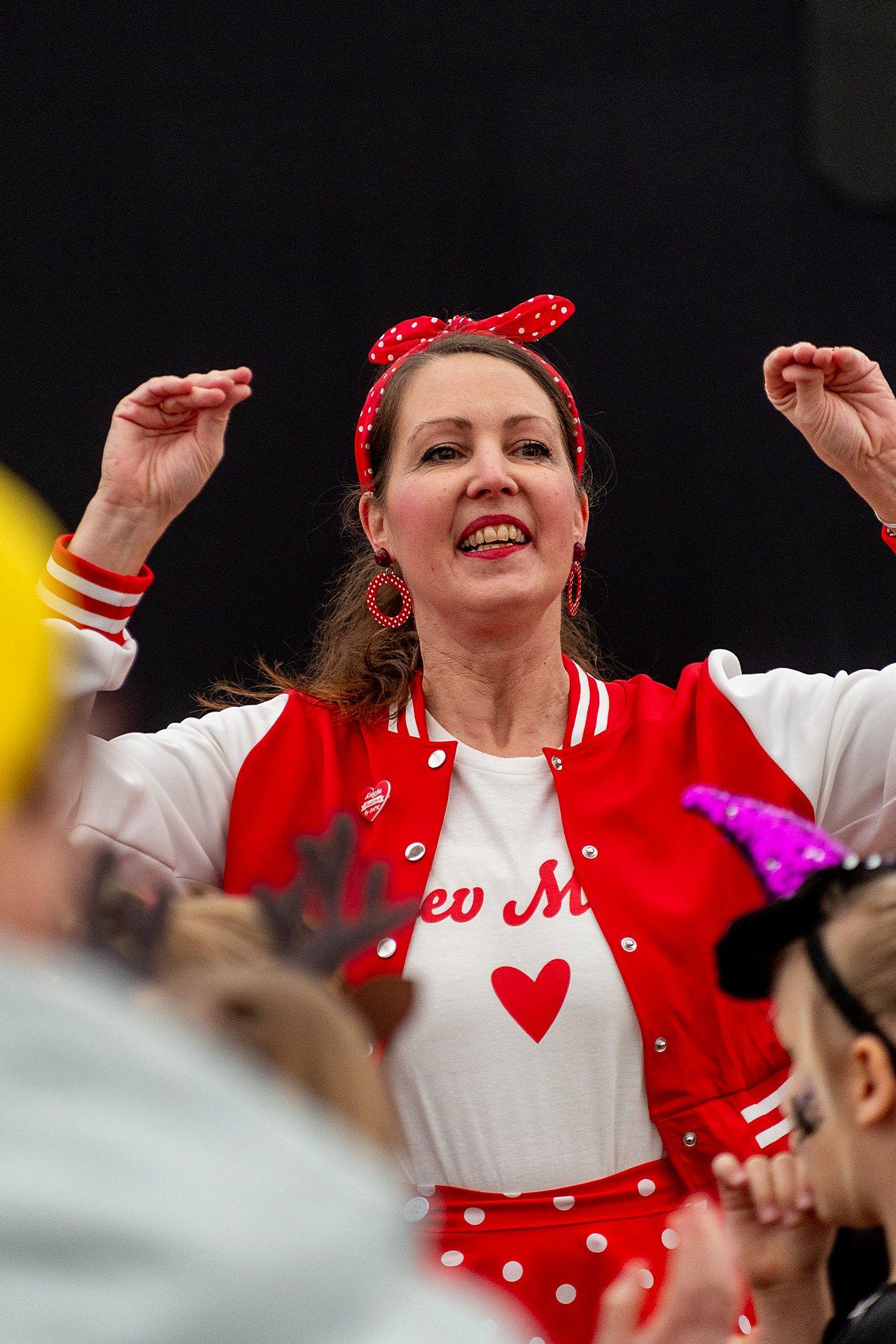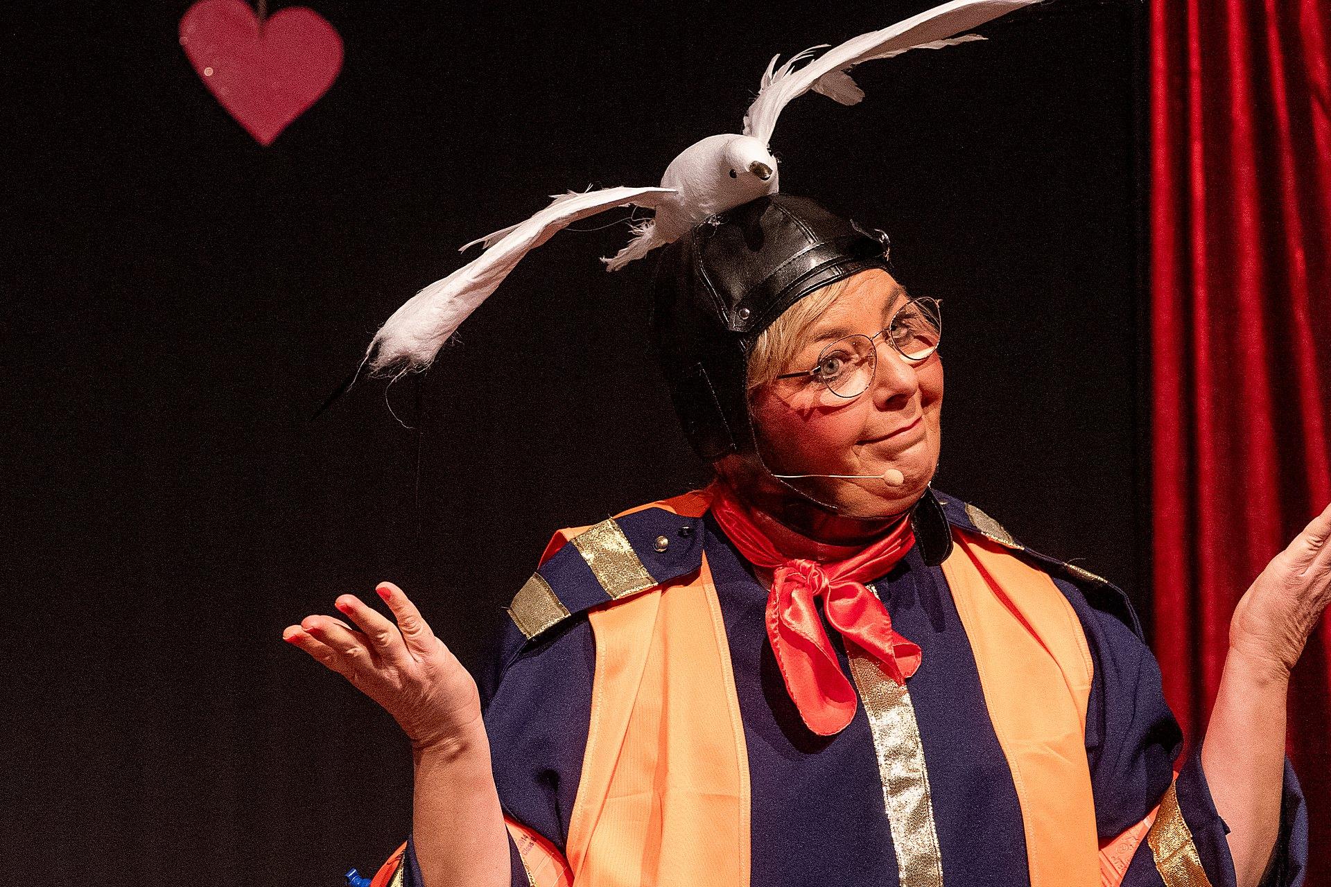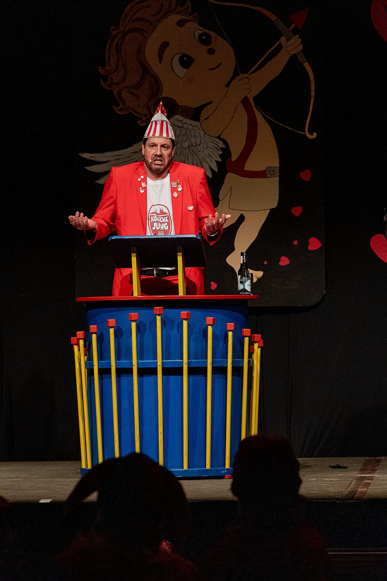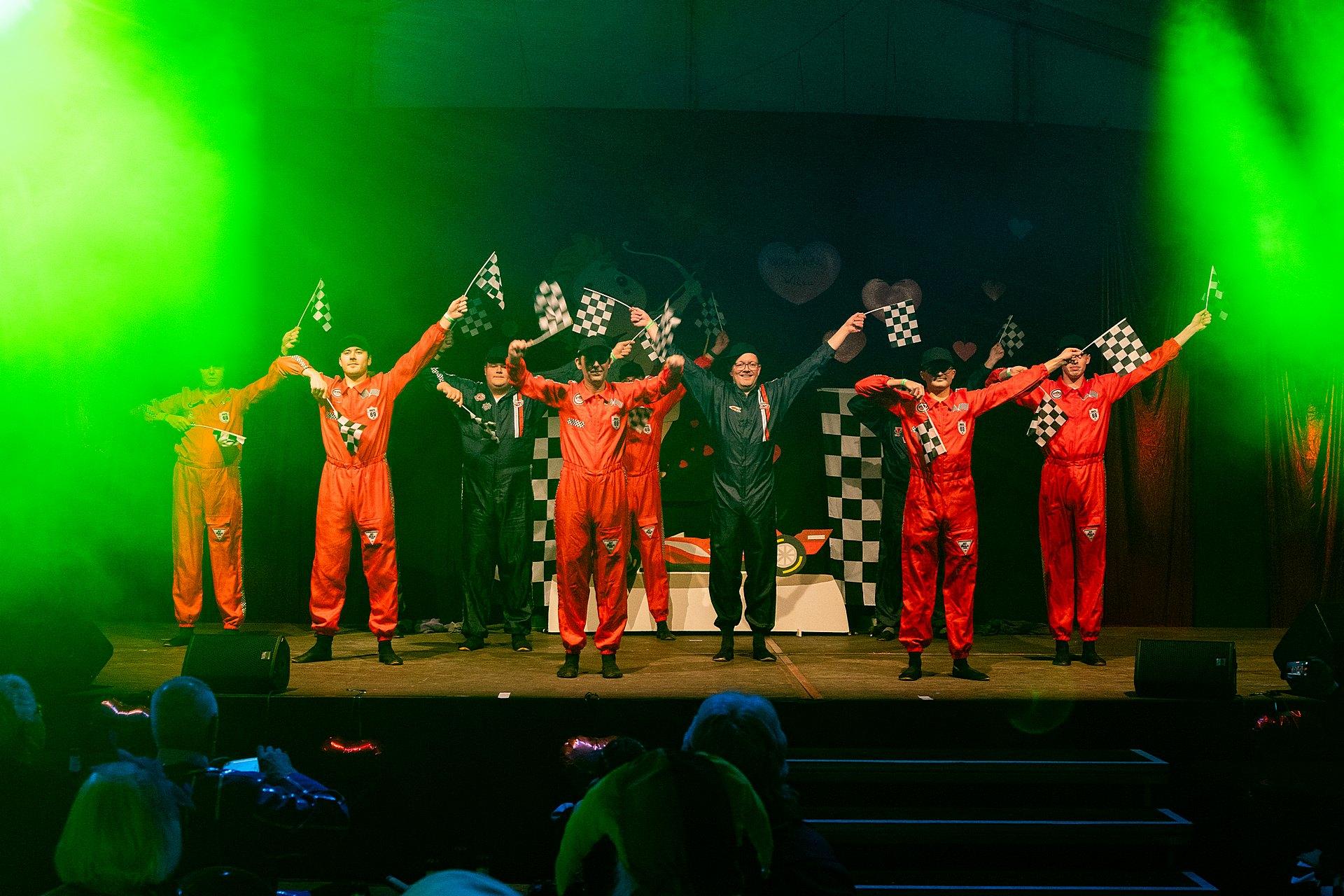Der Abend stand unter dem Thema „Valentinstag“, Miriam und Markus traten dem Motto entsprechend in der Farbe „rot“ auf. Auch die Helfer hinter und auf der Bühne, die „Valentinos“ hatten sie dem Motto entsprechend in der Farbe Rot gekleidet. Valentino Herbert Gehlmann war vor wenigen Tagen 60 geworden, das ganze Zelt gratulierte ihm mit „Happy Birthday“.