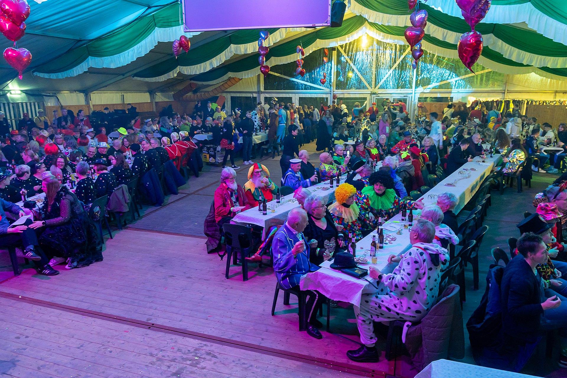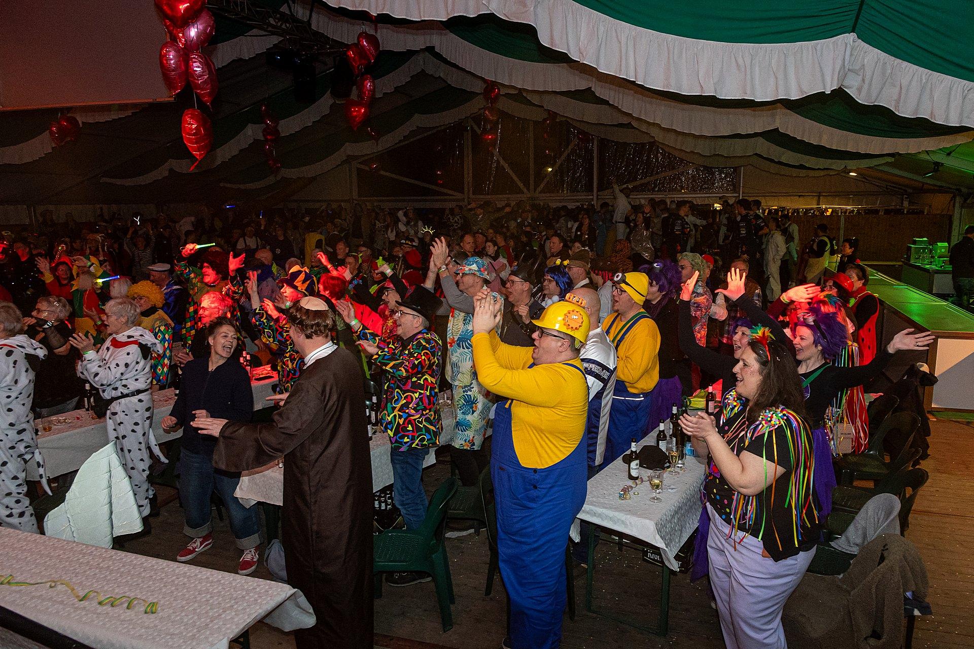 Nach dem Zug ist vor der Party. Das Festzelt stand bereit, über 1.000 Karnevalisten zog es zum Zelt zur Karnevalsparty. Um 24:00 h war es dann vorbei, die Musik wurde abgestellt, das Zelt geschlossen.
