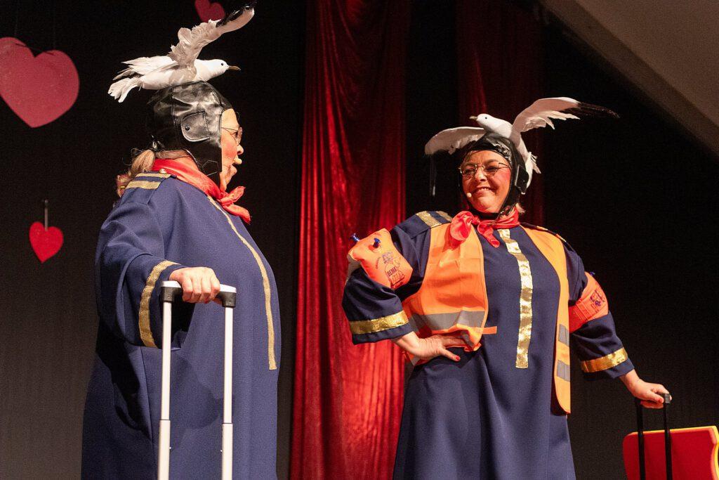 Die Stewardessen Martha und Anneliese alias Kicke Schulze-Bröring und Karin Hamburger hatten einiges aus ihrem Leben als Stewardessen zu bringen. Nicht nur das Kostüm, auch die Geschichten und die Mimik brachten das Publikum zum Lachen. Selbst einen Livegesang hatten die beiden in ihrem Programm, super!!!