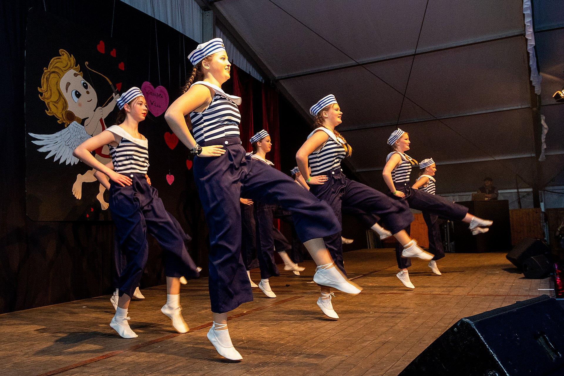 Die „Heidefunken“, eine von Katharina Ahlers und Judith Wortmann trainierte Nachwuchstanzgruppe der Nachbarschaft, eröffneten das Programm mit einem Showtanz, sehr beeindruckend, was diese Nachwuchstänzerinnen schon leisten. Ein erster Höhepunkt, vor allem für die Goxeler Eltern der Tänzerinnen. Die Heidefunken sind zwei Mal aufgetreten, das zweite Mal im Anschluss des Auftrittes der Konfettiflotte.