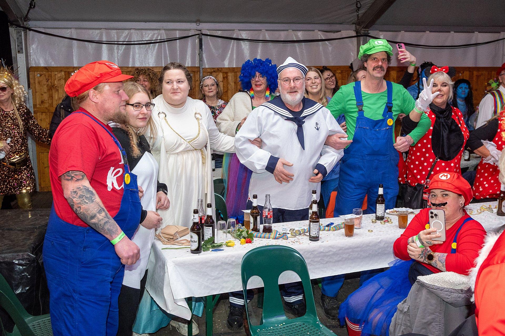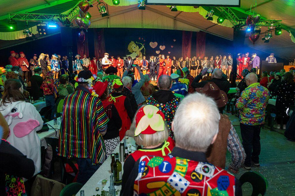 Ein kurzweiliger Büttabend mit vielen Höhepunkten war zu Ende, jetzt konnte sie starten, die „After Show Party“ im Festzelt,
