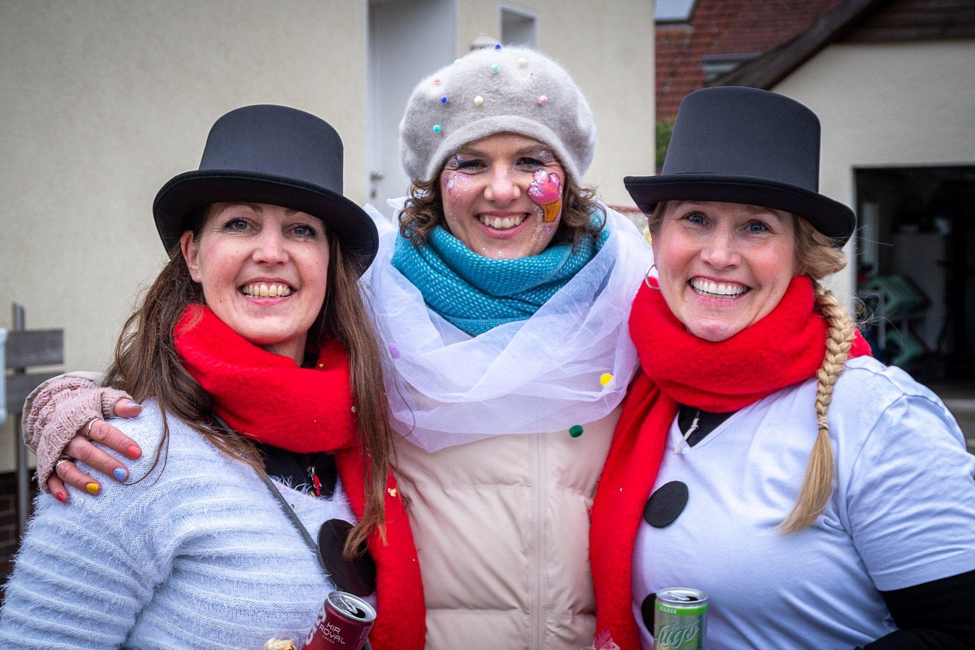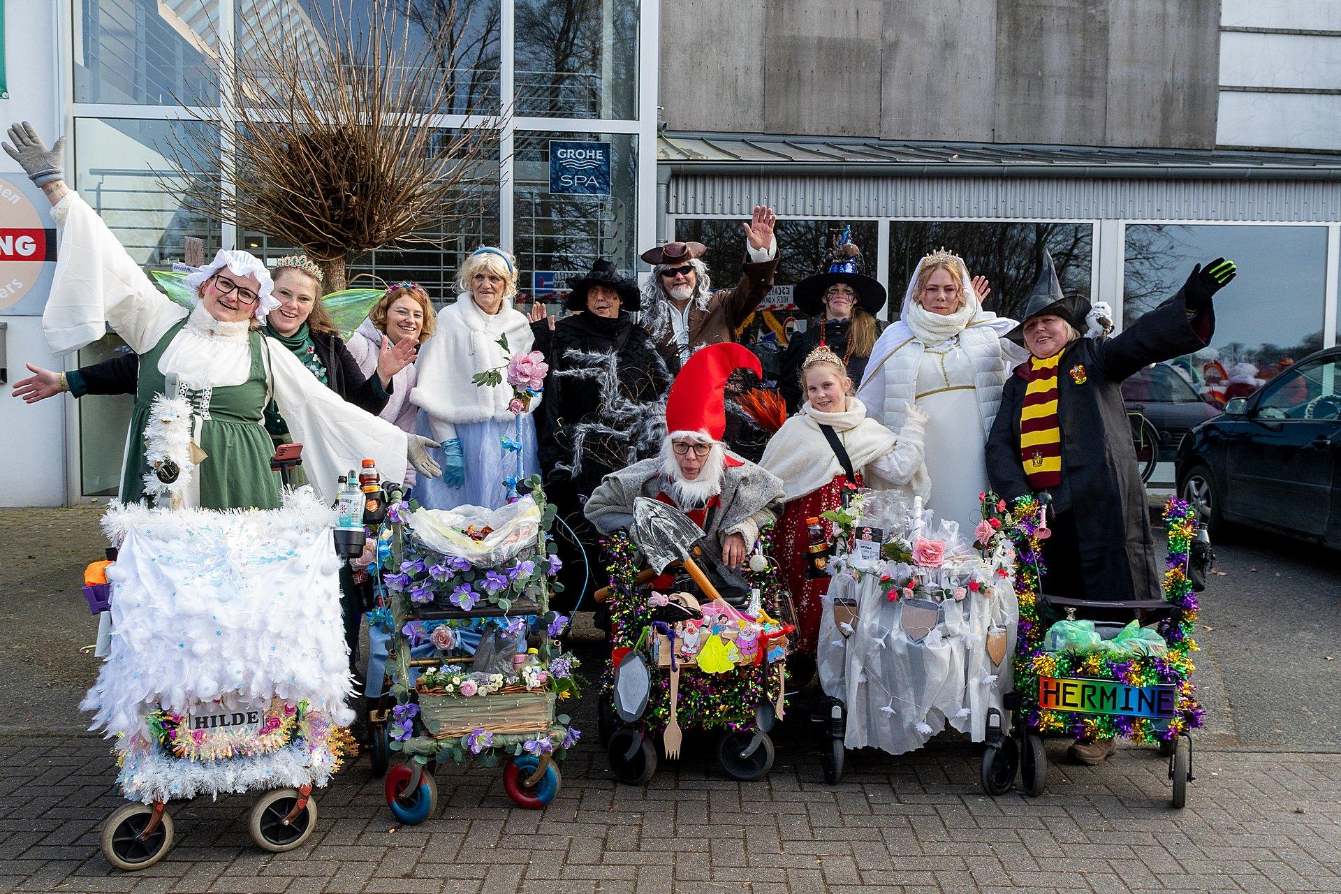 Gestartet sind die Goxeler Weiber am Rondell. Erster Anlaufpunkt war in diesem Jahr das Rathaus, das Haus von Margret und Bernhard Hölscher. Viele haben die Gelegenheit genutzt, Margret und Bernhard für die jahrelange Gastfreundschaft zu danken, das Wohnzimmer war mit über 40 jecken Weibern rappelvoll.