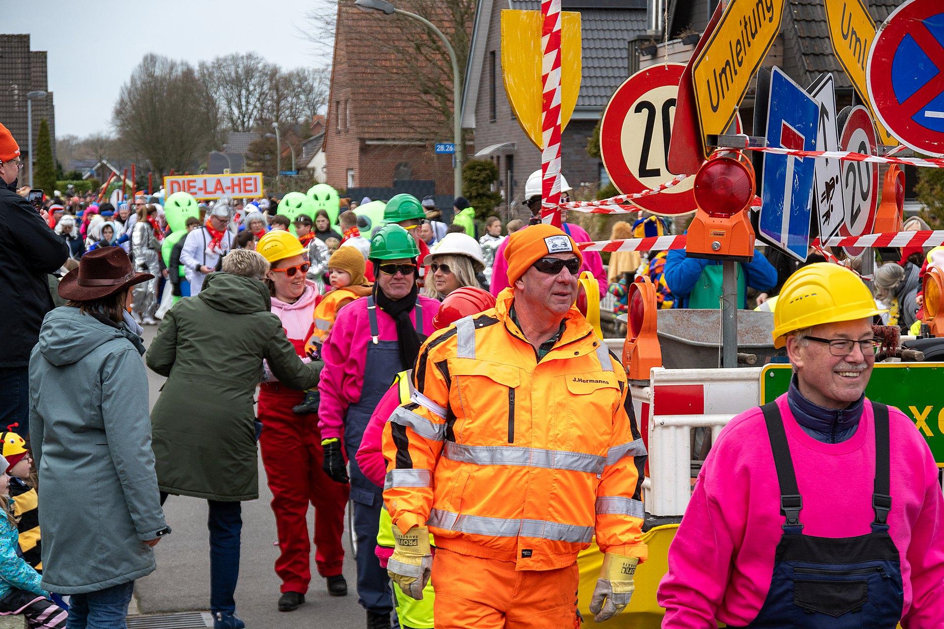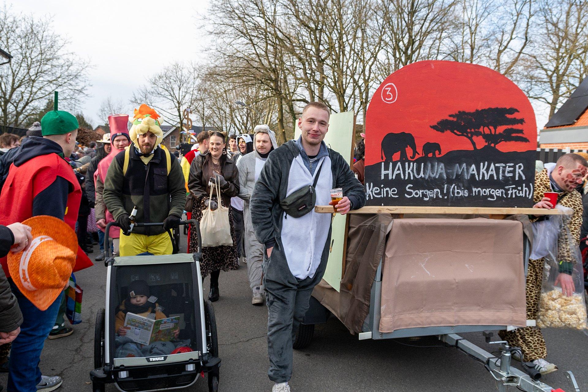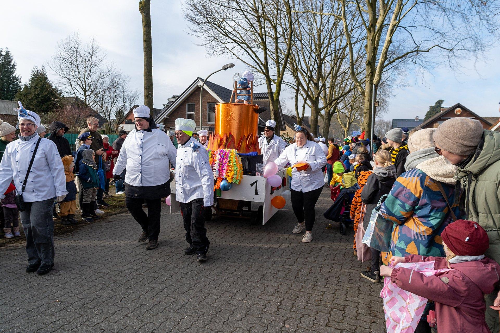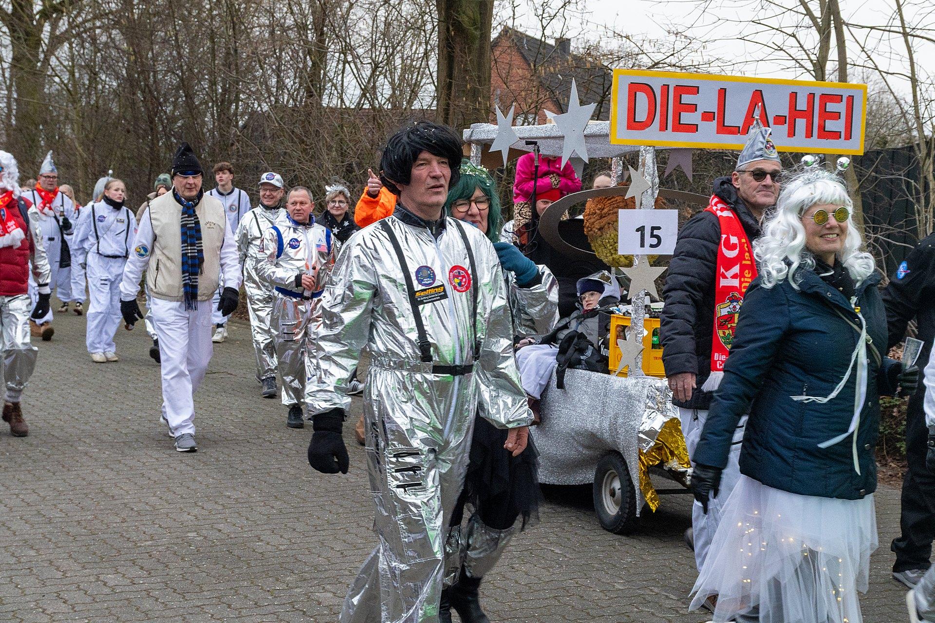 Über Wochen hatten die Nachbarn in Kellern, Garagen und Kellern gesägt, geschraubt, gemalt, dekoriert. Jetzt endlich konnten die Wagen gezeigt werden. Ab 14:00 h fanden sich die Gruppen am Markenweg ein sich aufzustellen. Auch DieLaHei, AnKoBlu und die KaGeHo waren vertreten, ein schönes Zeichen des Zusammenhaltes.