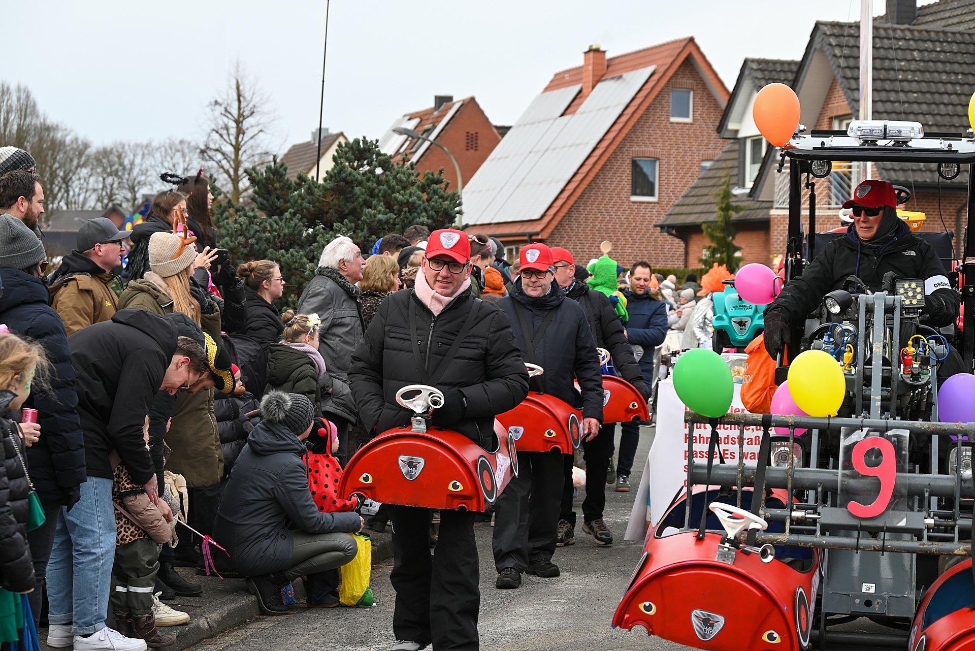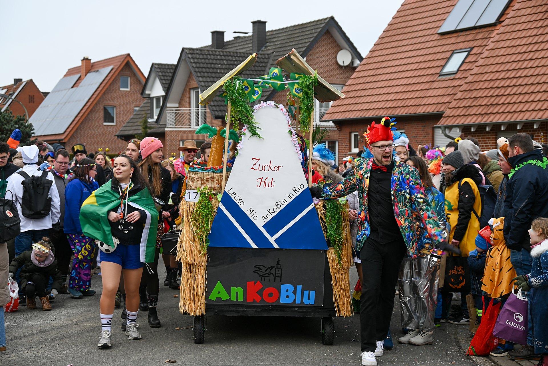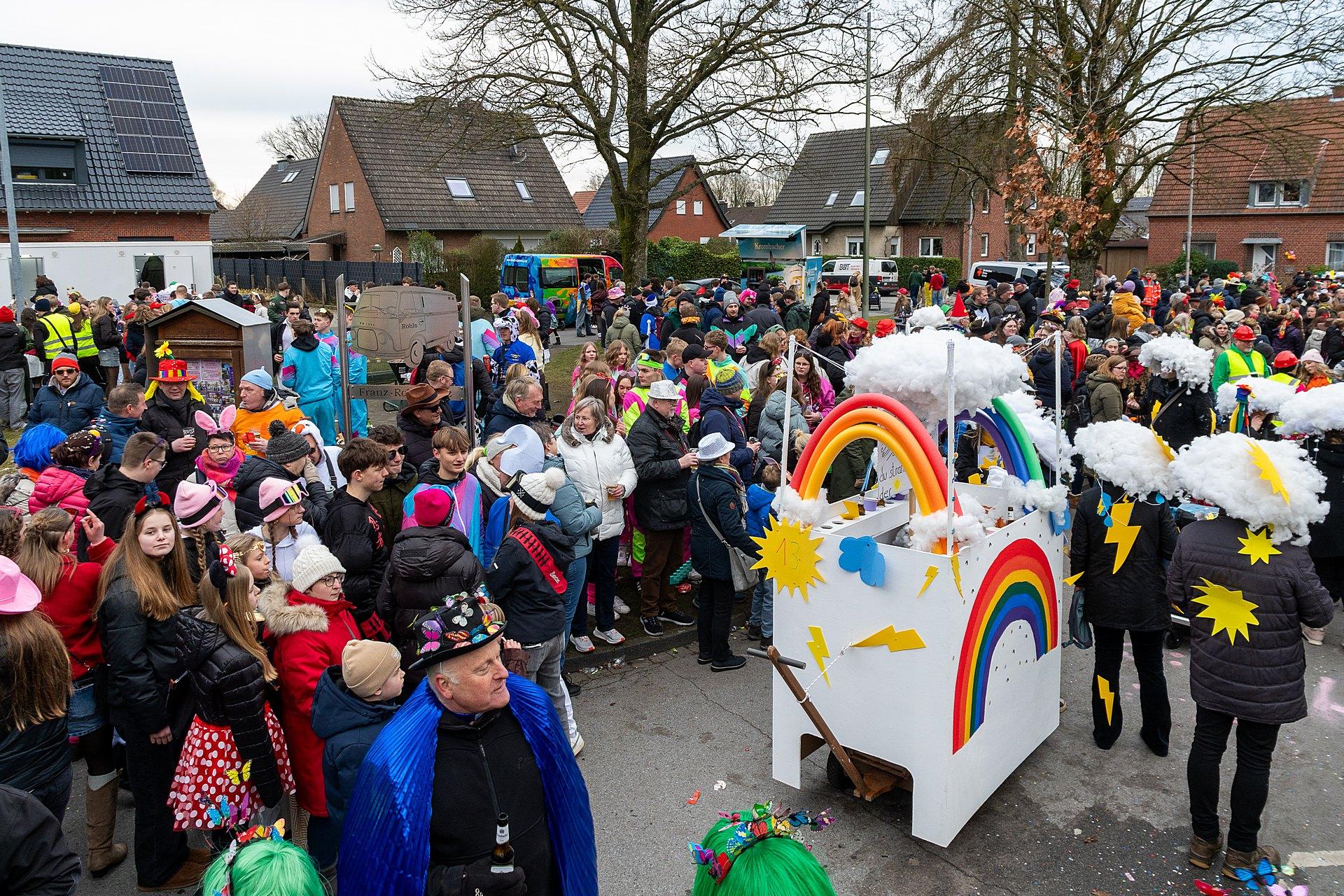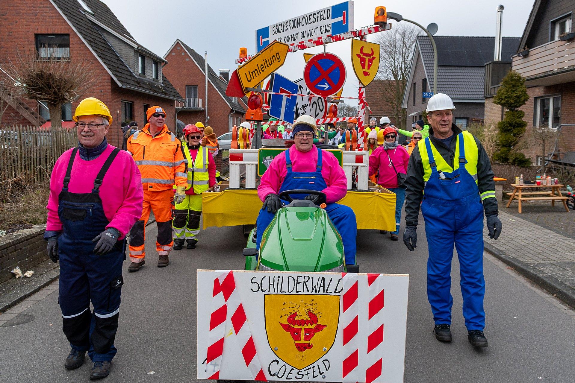 Über Wochen hatten die Nachbarn in Kellern, Garagen und Kellern gesägt, geschraubt, gemalt, dekoriert. Jetzt endlich konnten die Wagen gezeigt werden. Ab 14:00 h fanden sich die Gruppen am Markenweg ein sich aufzustellen. Auch DieLaHei, AnKoBlu und die KaGeHo waren vertreten, ein schönes Zeichen des Zusammenhaltes.