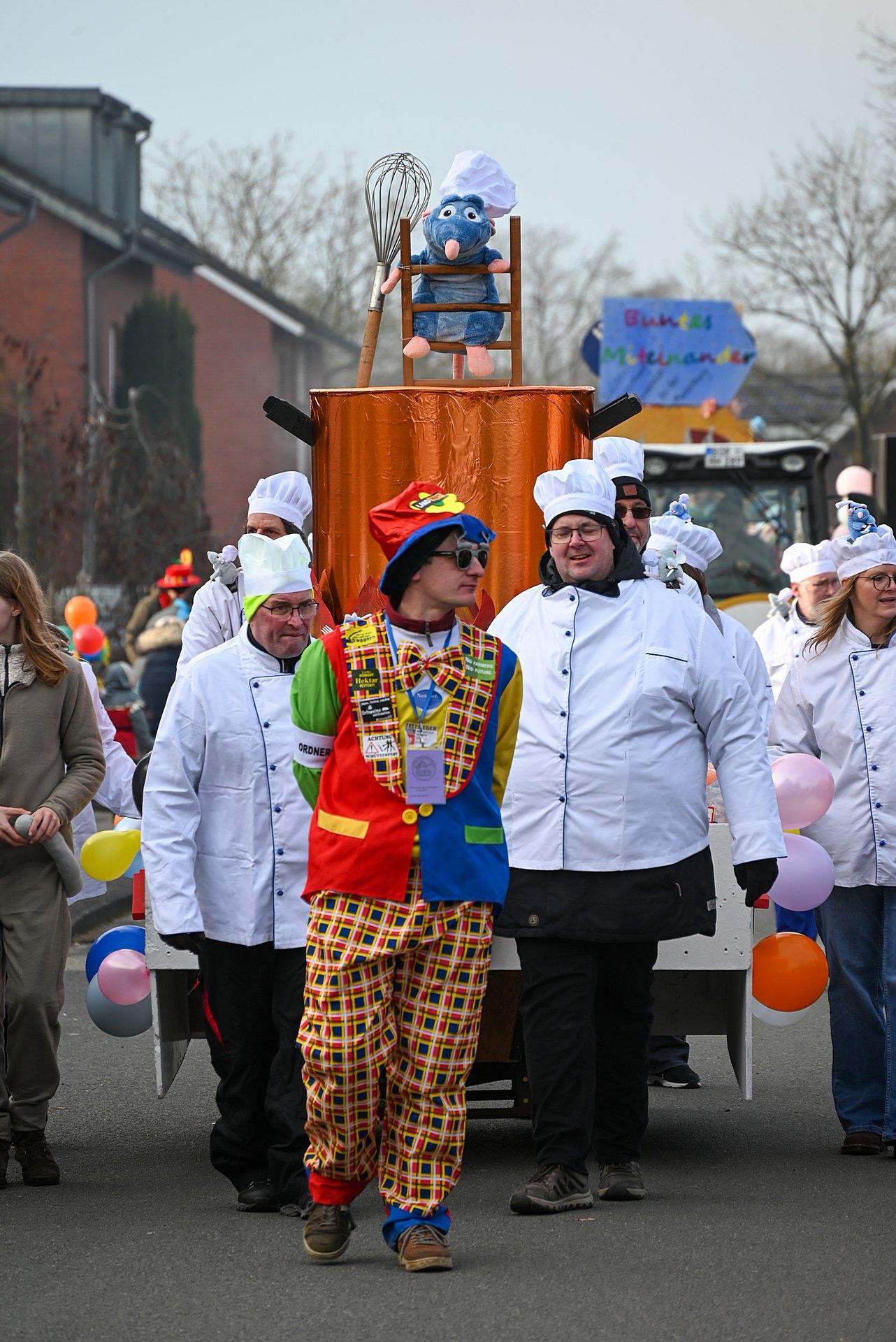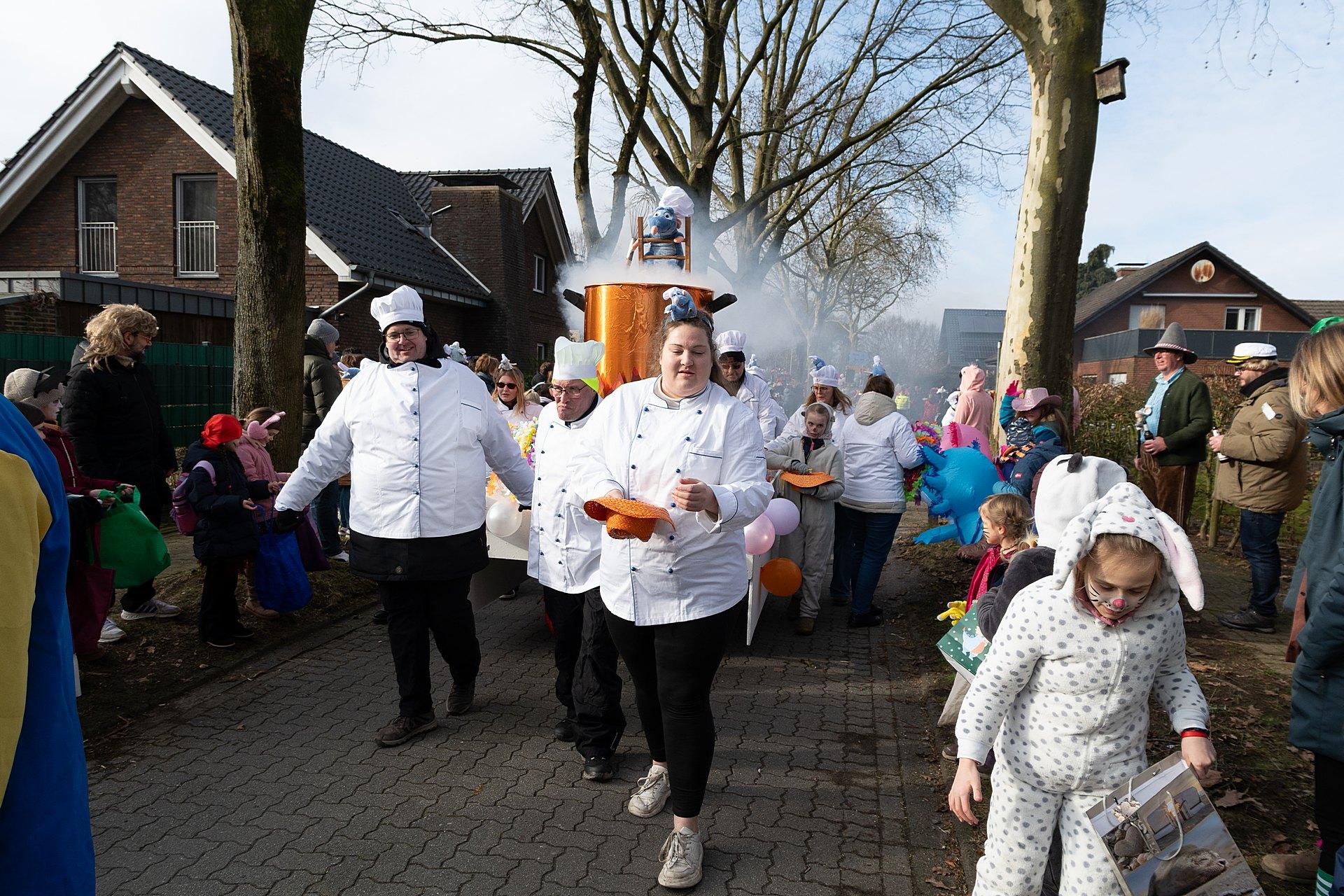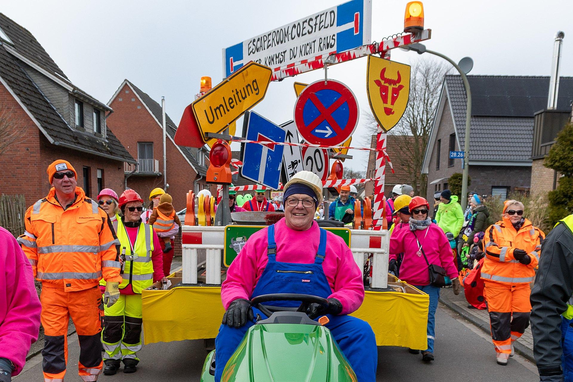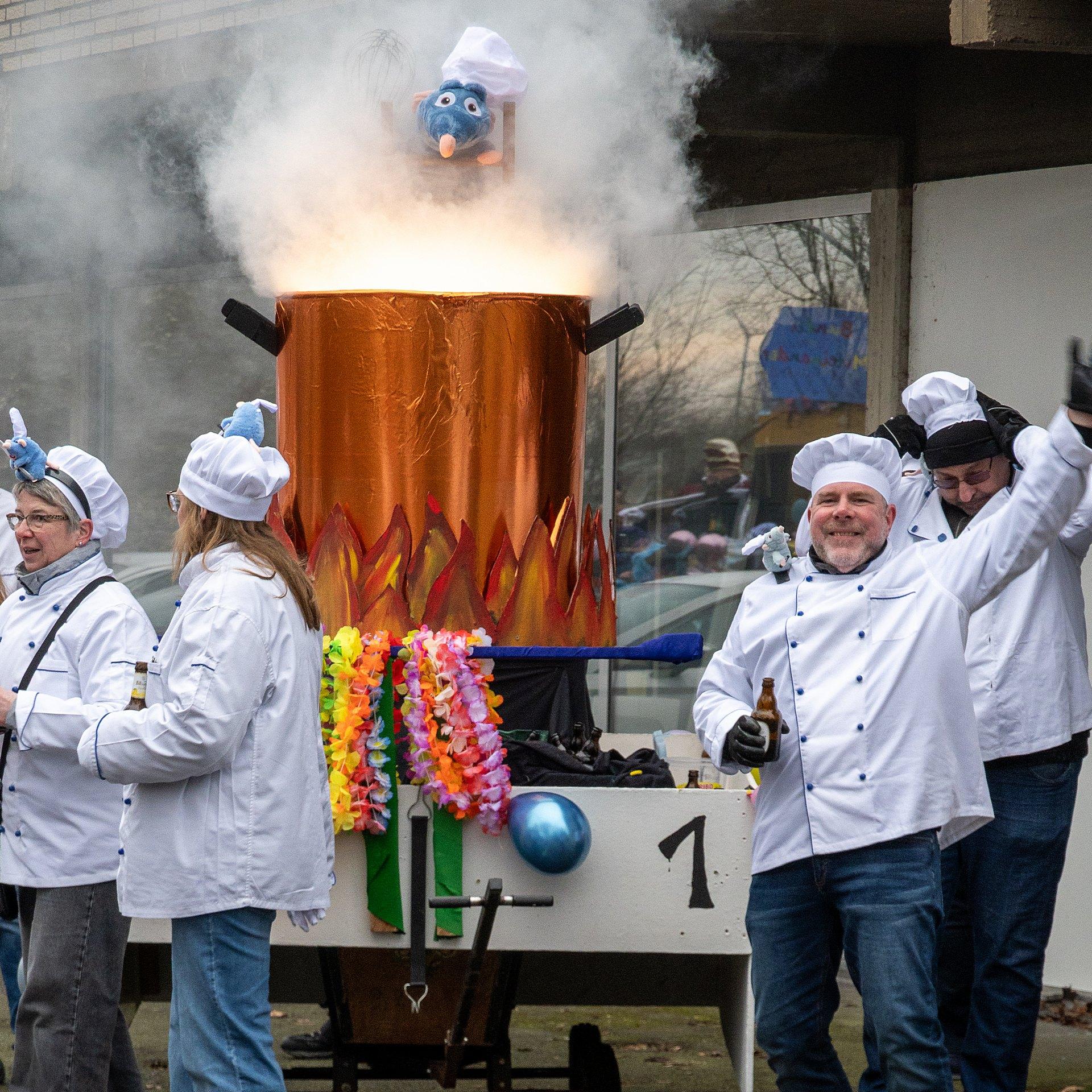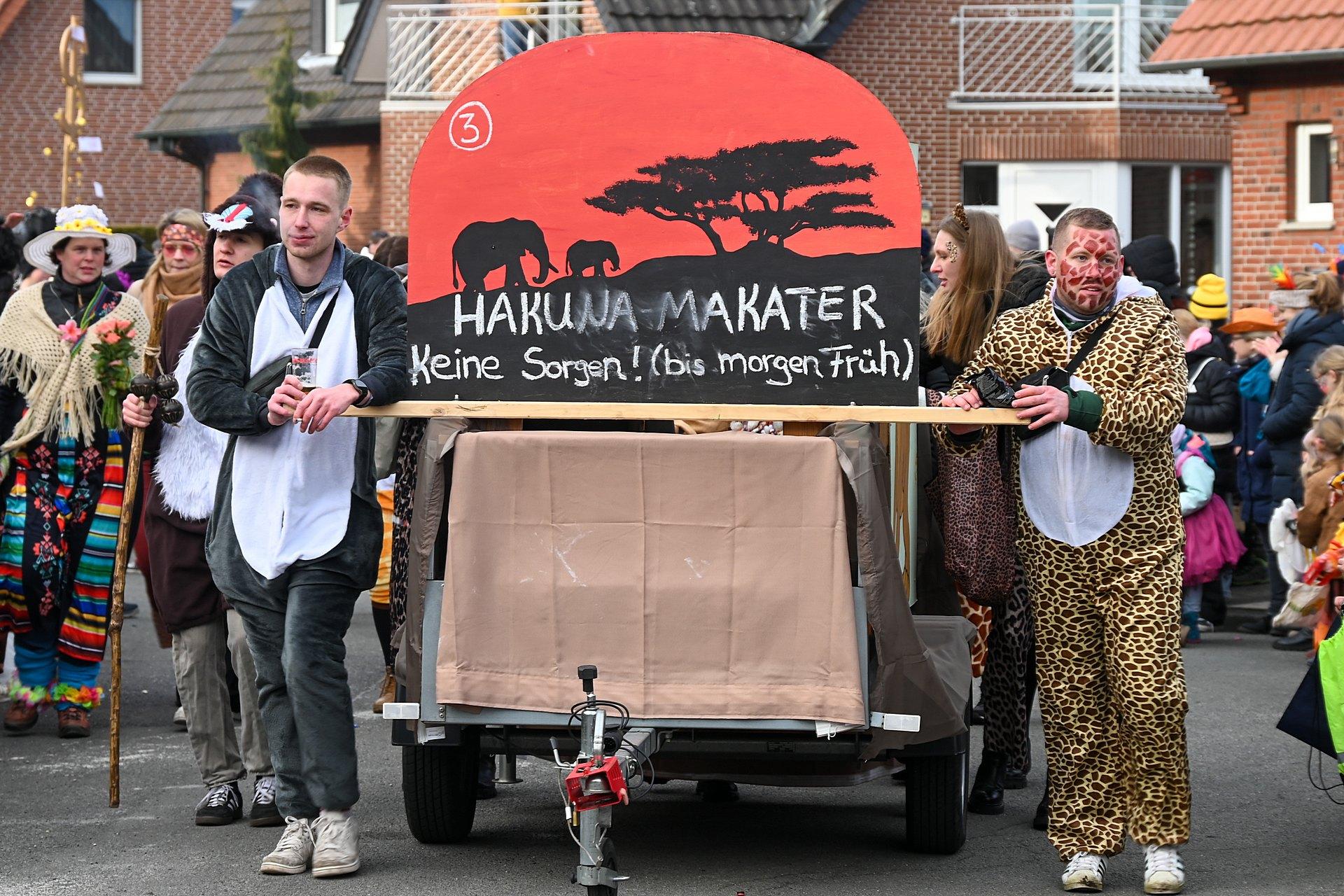 Über Wochen hatten die Nachbarn in Kellern, Garagen und Kellern gesägt, geschraubt, gemalt, dekoriert. Jetzt endlich konnten die Wagen gezeigt werden. Ab 14:00 h fanden sich die Gruppen am Markenweg ein sich aufzustellen. Auch DieLaHei, AnKoBlu und die KaGeHo waren vertreten, ein schönes Zeichen des Zusammenhaltes.