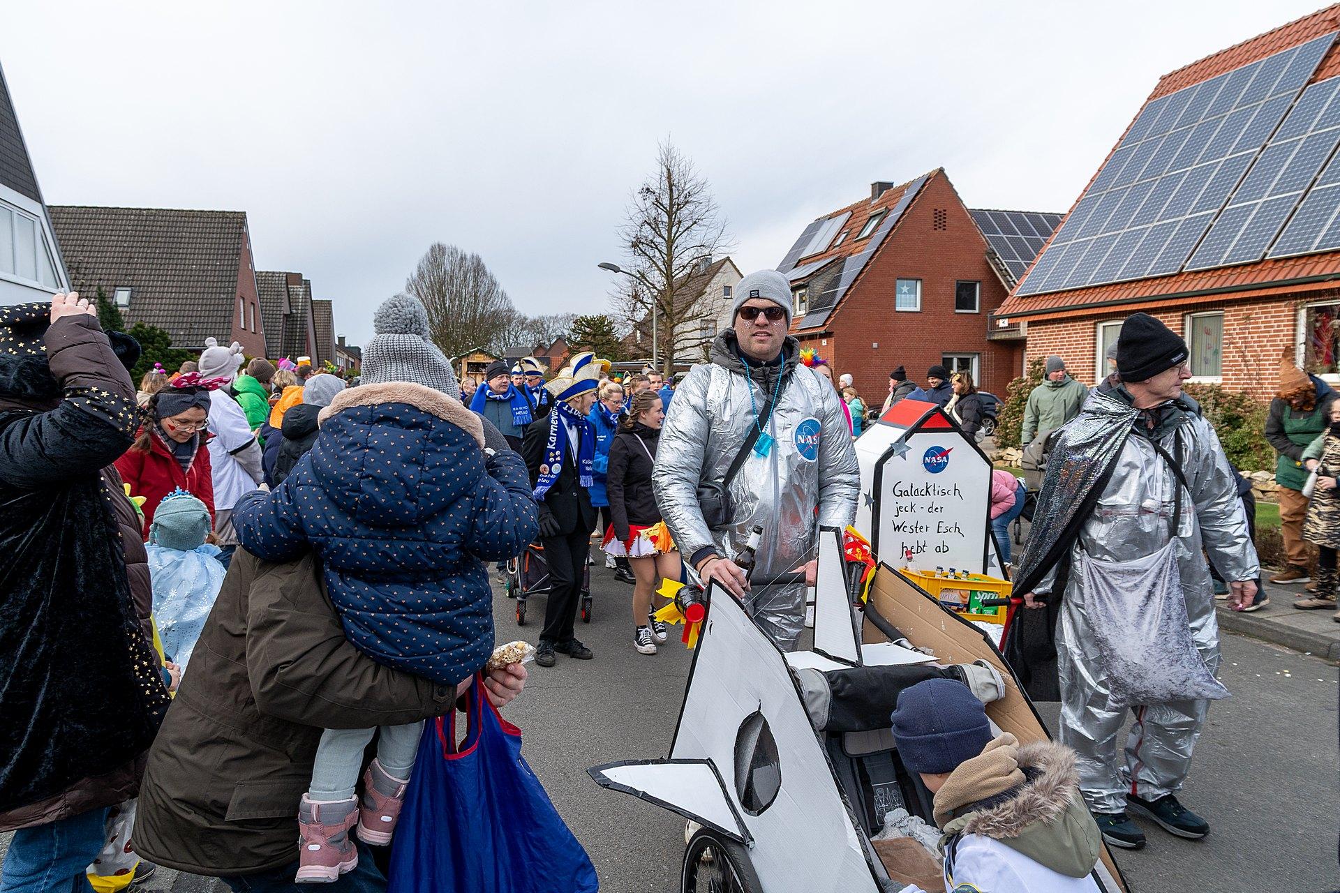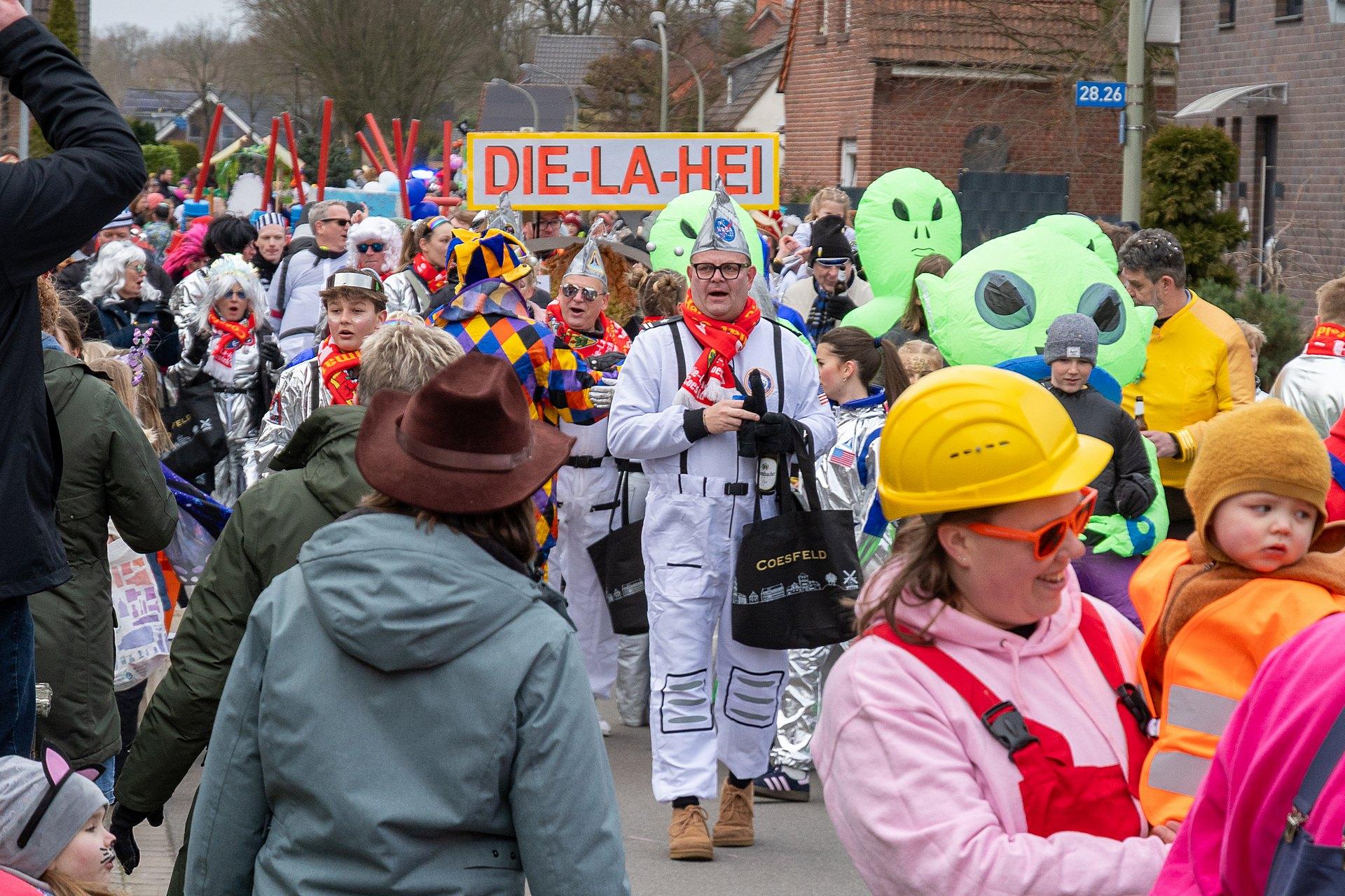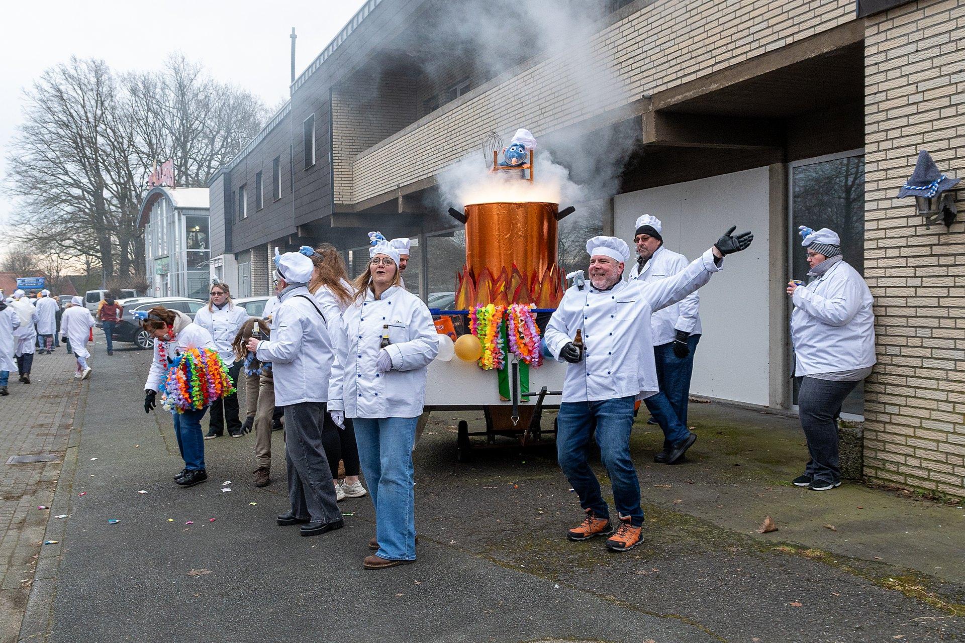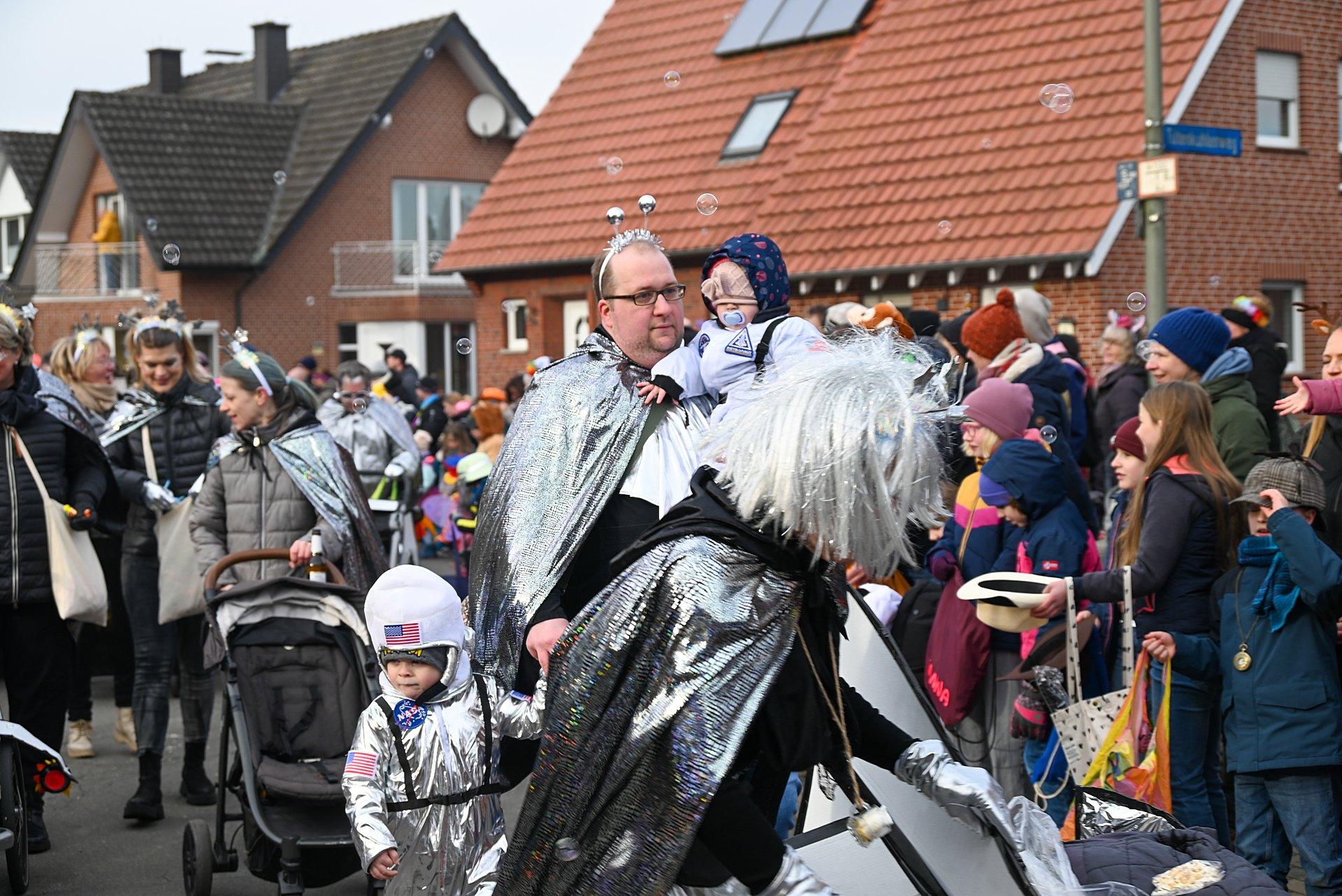Über Wochen hatten die Nachbarn in Kellern, Garagen und Kellern gesägt, geschraubt, gemalt, dekoriert. Jetzt endlich konnten die Wagen gezeigt werden. Ab 14:00 h fanden sich die Gruppen am Markenweg ein sich aufzustellen. Auch DieLaHei, AnKoBlu und die KaGeHo waren vertreten, ein schönes Zeichen des Zusammenhaltes.