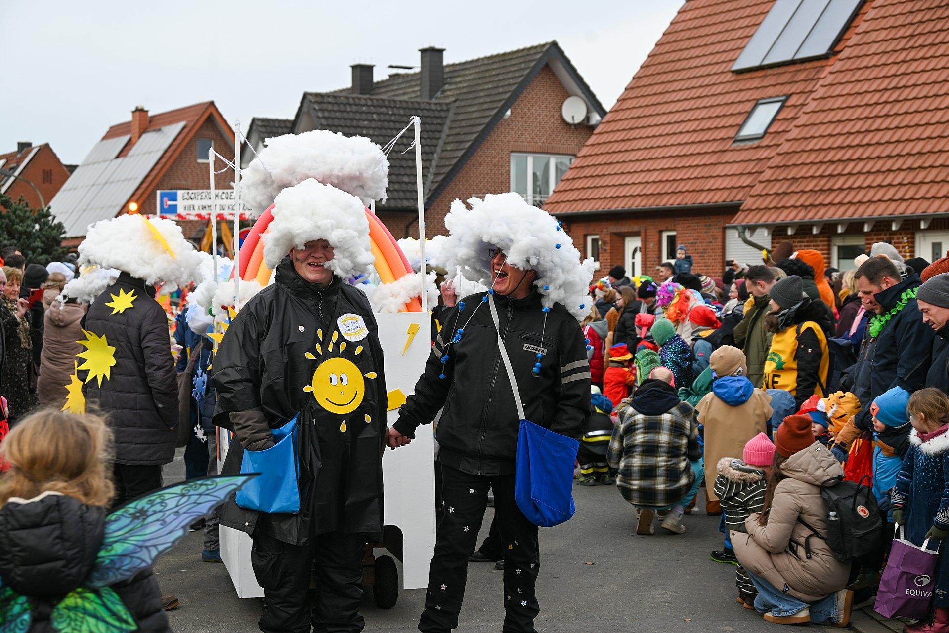 Über 20 Gruppen hatten sich zum Familienumzug in Goxel angemeldet. Das Wetter spielte mit, der Zug konnte pünklich um 15:00 h am Tulpensonntag starten.