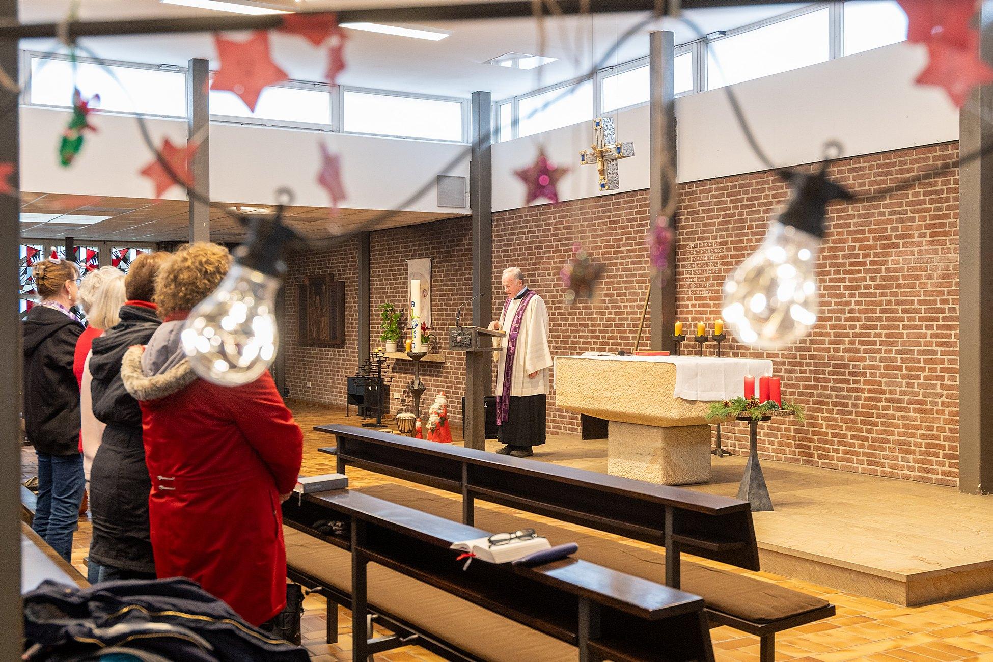Um 14:00 h eröffnete Pastor Hammans mit einer kleinen Andacht in der Herz Jesu Kirche den Basar.
