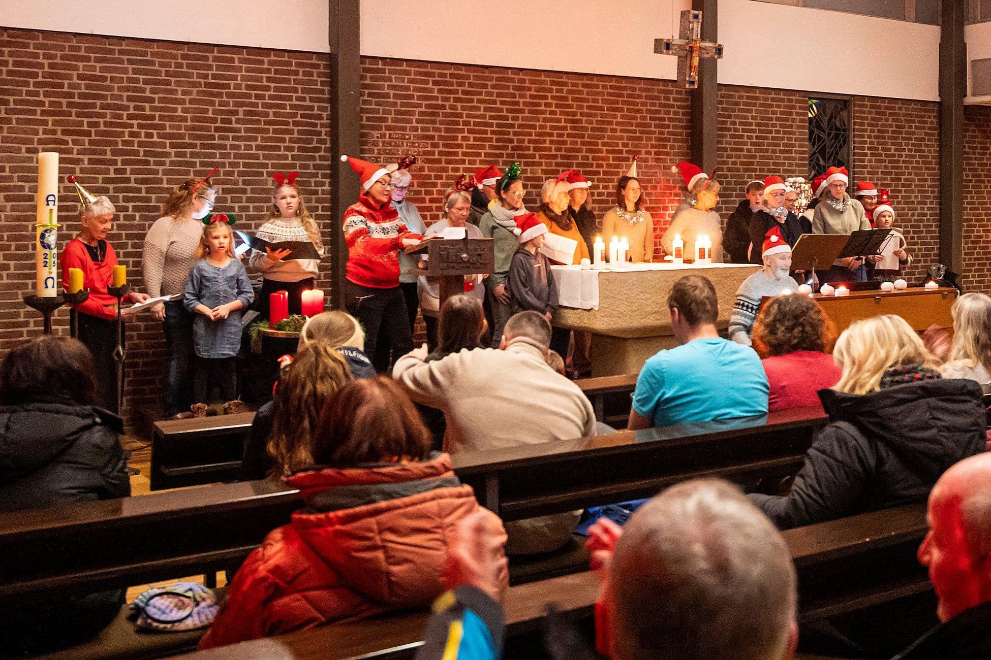 Um 15:00 h waren die Kinder zu einer kleine Zaubershow eingeladen. Auch der Nikolaus war da, um den Kindern eine schöne Weihnachtszeit zu wünschen. Um 18:00 h lud ein Projektchor der „Joyful-Singers“ zu einer gemeinsamen Singerrunde in den Kirchenraum der Herz Jeus Kirche ein.