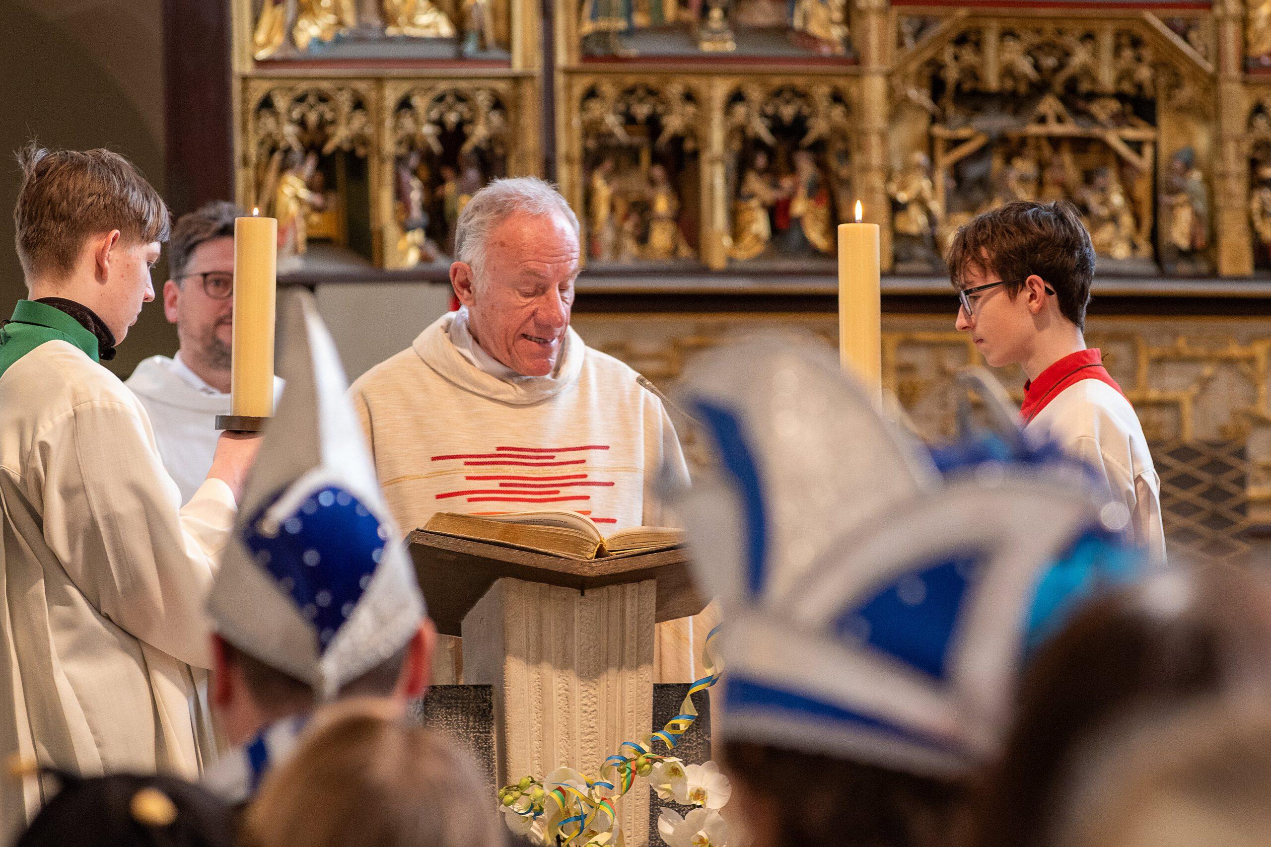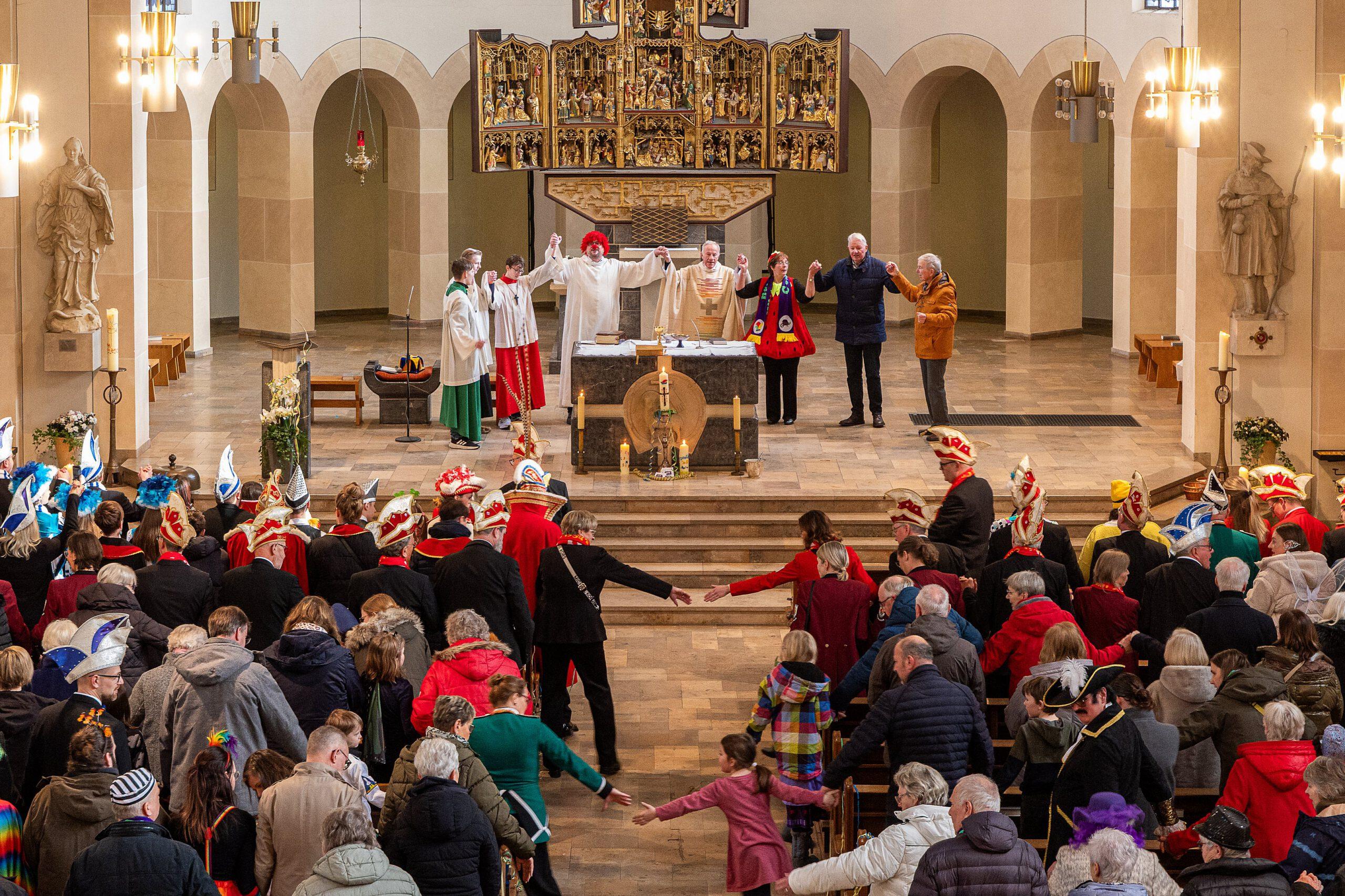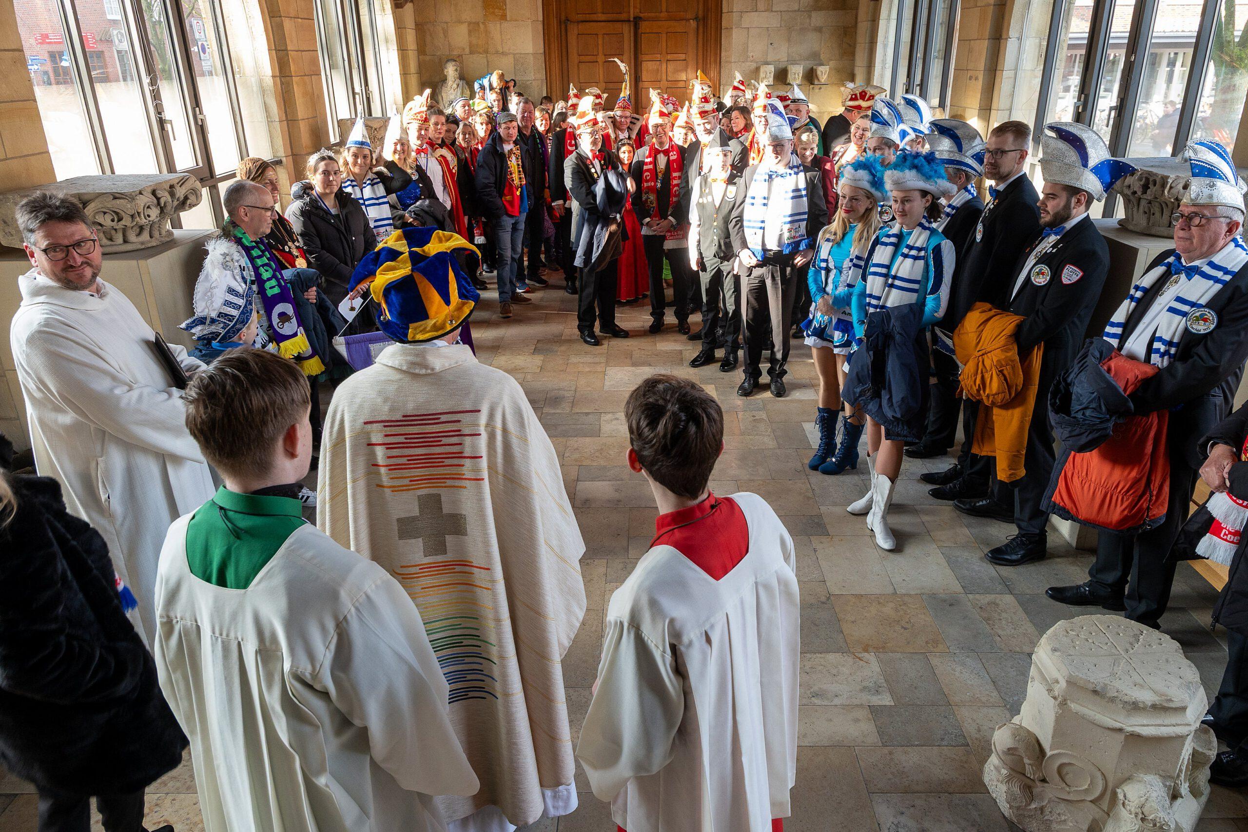 Der Karneval in Coesfeld geht in seine finalen Wochen. Zum Auftakt feierten die Karnevalsgruppierungen AnKoBlu, DieLaHei, Kokikate und Nachbarschaft Wittenfeld einen gemeinsamen Gottesdienst, in diesem Jahr in der Jakobi Kirche, zelebriert von Pastor Johannes Hammans. Natürlich waren das Kinderprinzenpaar Nils und Ole Möllers, begleitet von vielen Wittenfelder Narren, dabei.