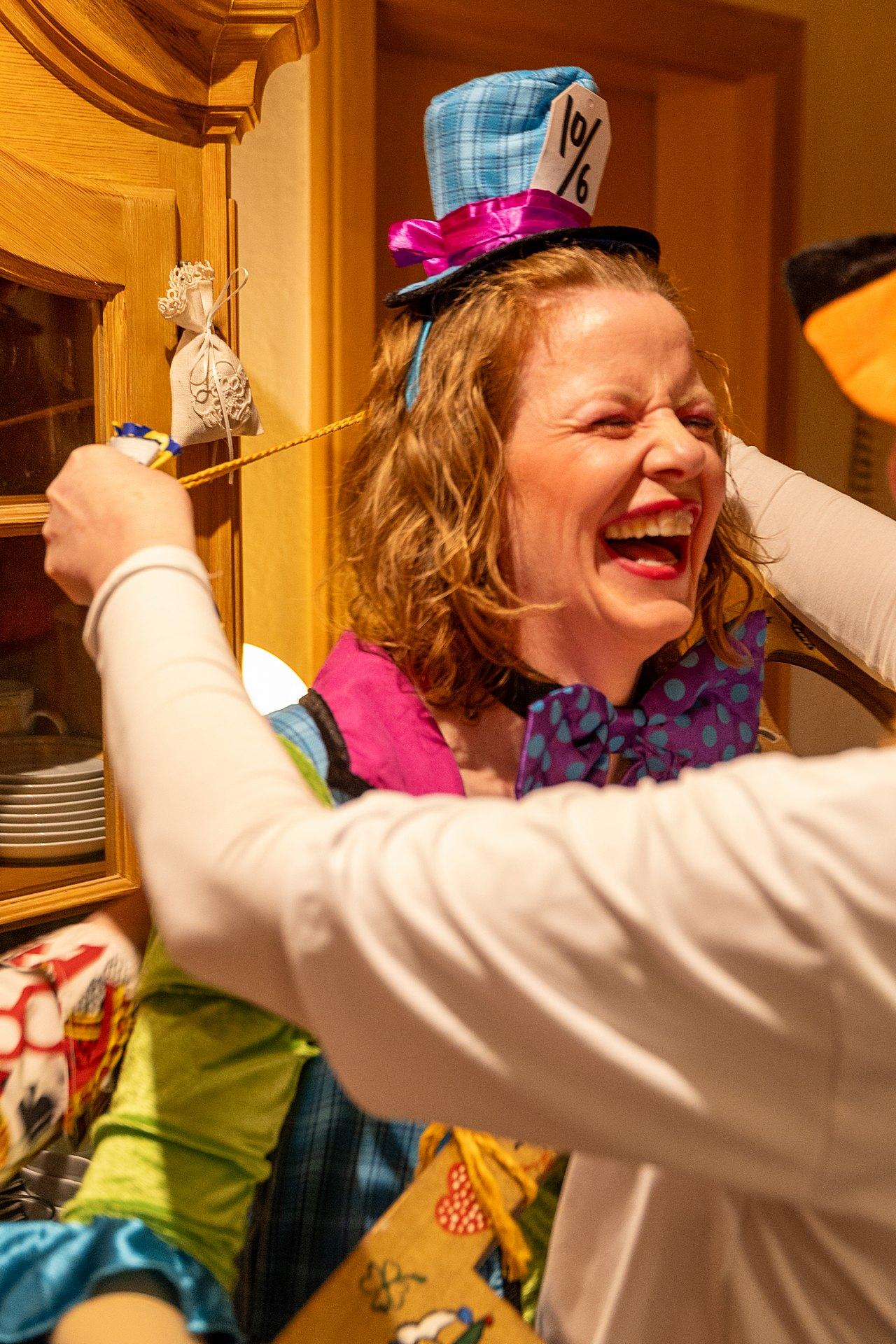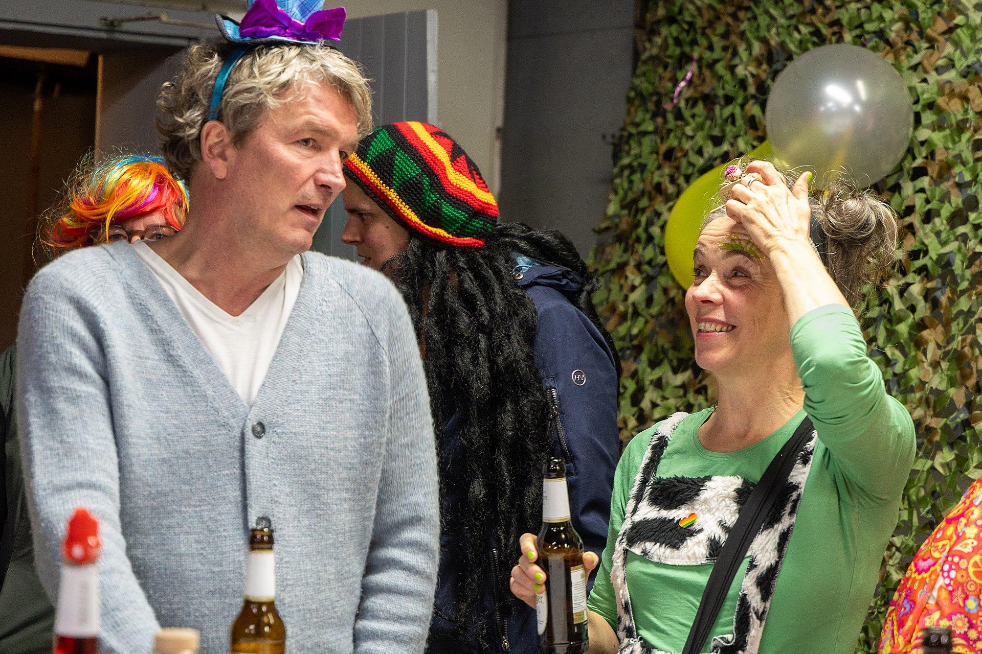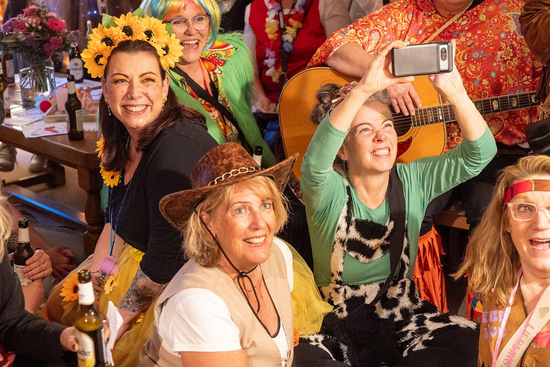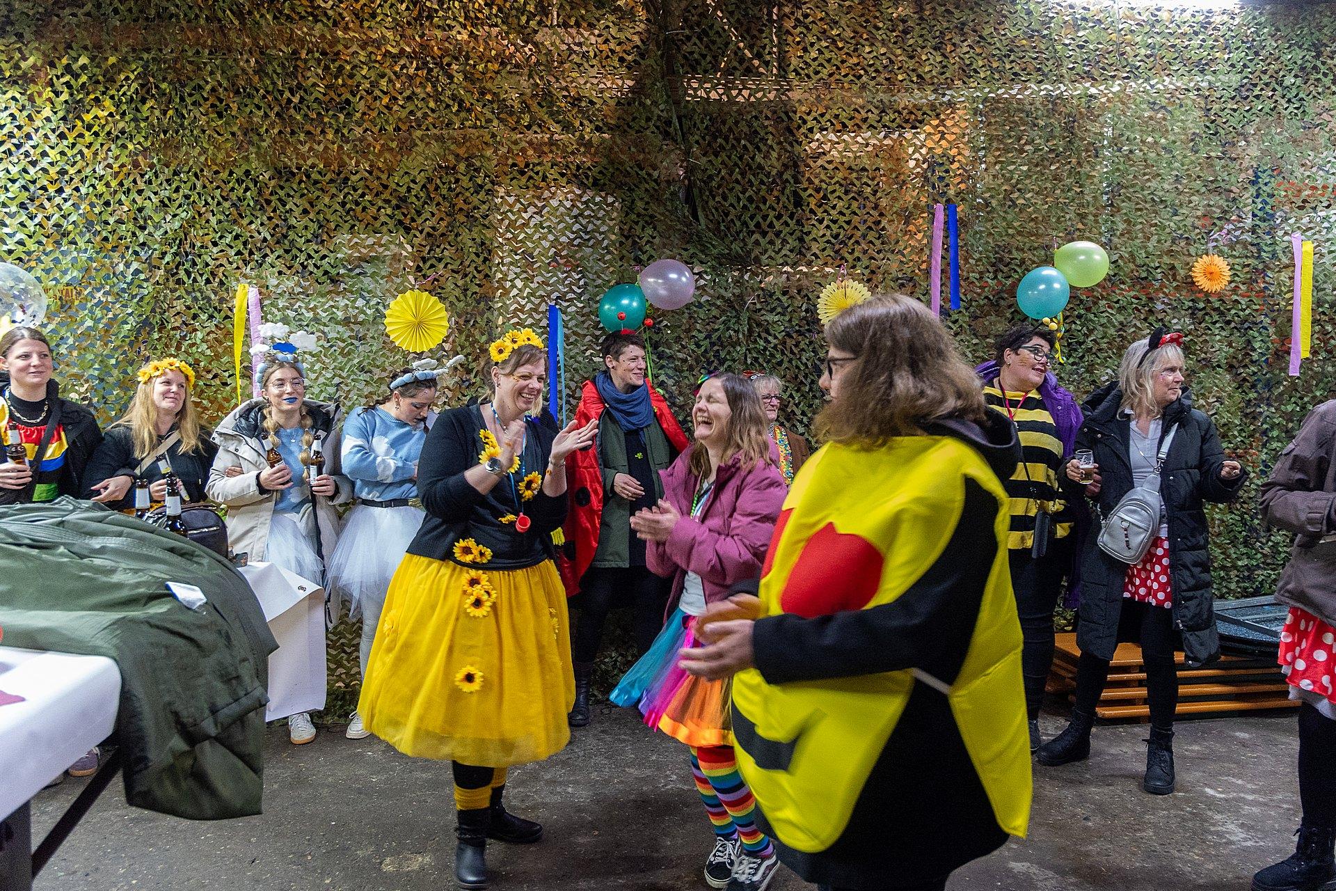 Gestartet sind die Goxeler Weiber am Rondell. Erster Anlaufpunkt war in diesem Jahr das Rathaus, das Haus von Margret und Bernhard Hölscher. Viele haben die Gelegenheit genutzt, Margret und Bernhard für die jahrelange Gastfreundschaft zu danken, das Wohnzimmer war mit über 40 jecken Weibern rappelvoll.