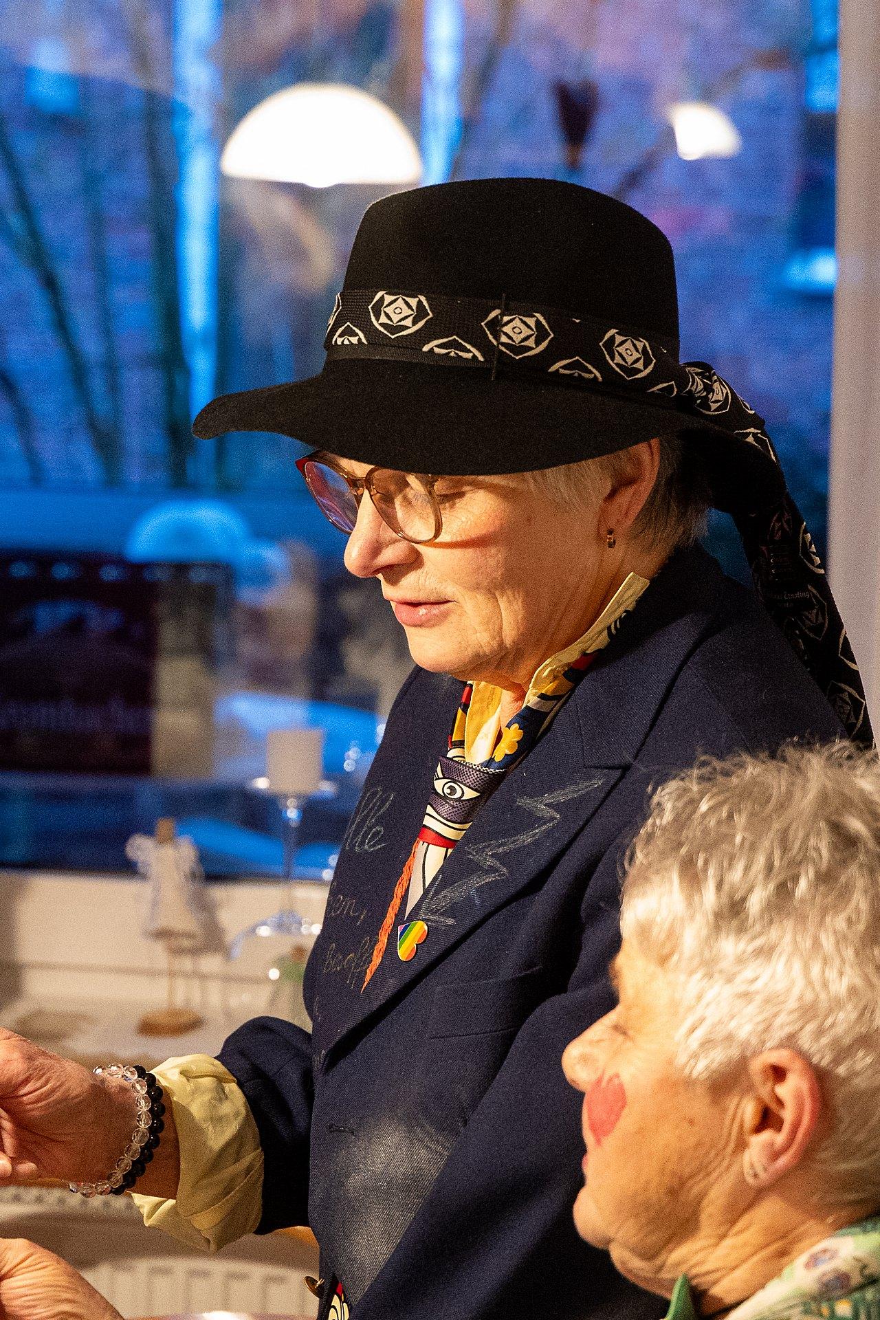 In Versform bedankte sich Maria im Namen aller Wittenfelder bei Margret und Bernhard. Ein besonderes Geschenk hatte Gitte Gröning, die leider nicht dabei sein konnte, vorbereitet: sie hatte den Text des Schlagers „40 Jahre die Flippers“ als Hommage an Margret und Bernhard umgetextet. Die Melodie ist bekannt, Textzettel waren ausreichend verteilt, und los ging es.