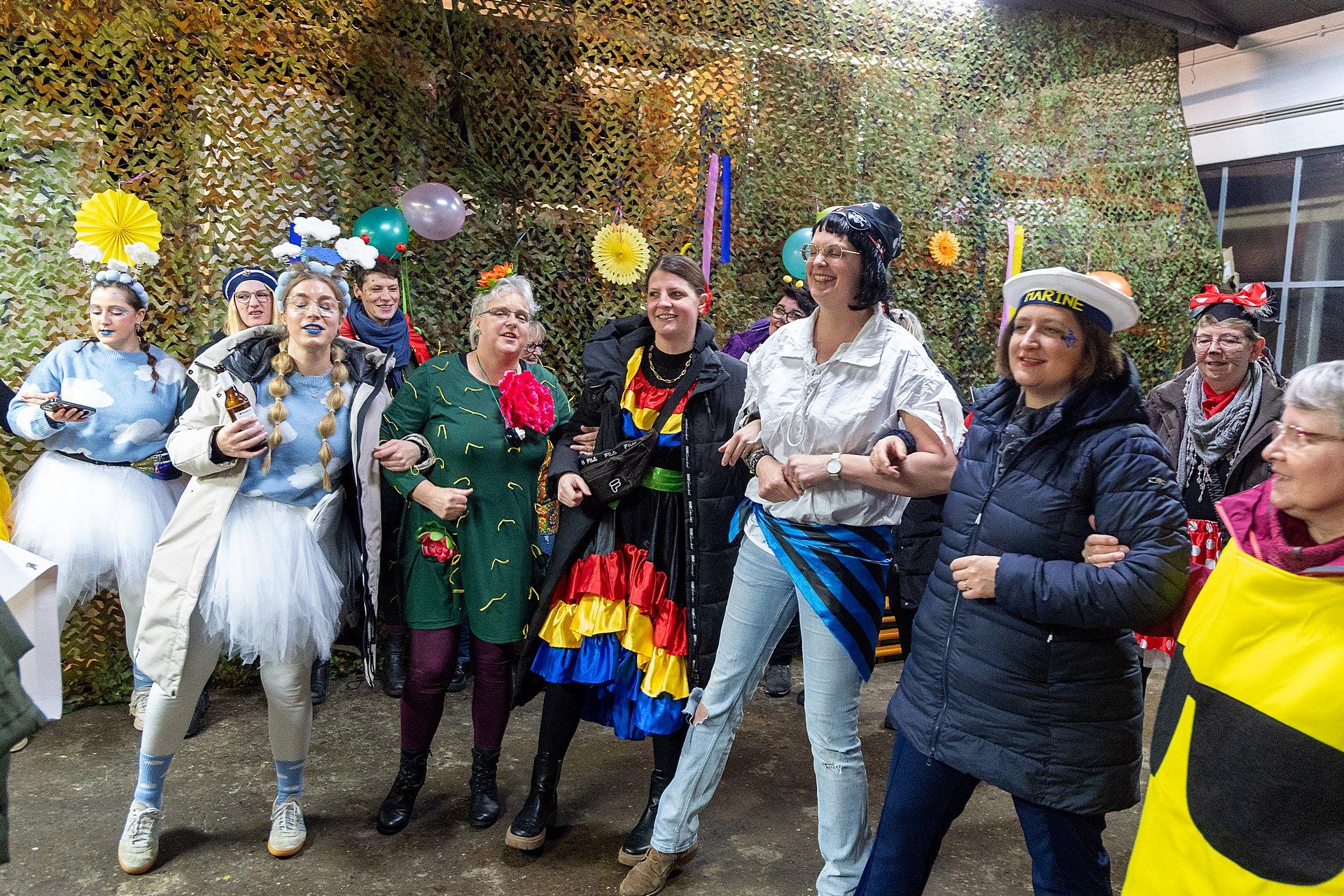 Vom Rathaus ging es dann weiter zu Firma Selting. Hier sind die Weiber immer willkommen. Die Werkstatt ist geräumt und die über 40 Wittenfelder Weiber können ordentlich feiern.