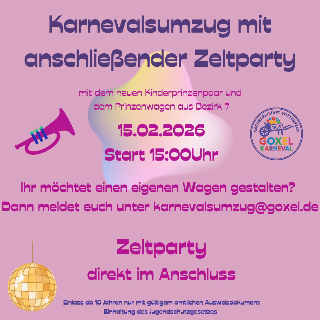 Anmeldungen für den Karnevalsumzug werden gerne per Mail an Karnevalsumzug@goxel.de entgegengenommen.
