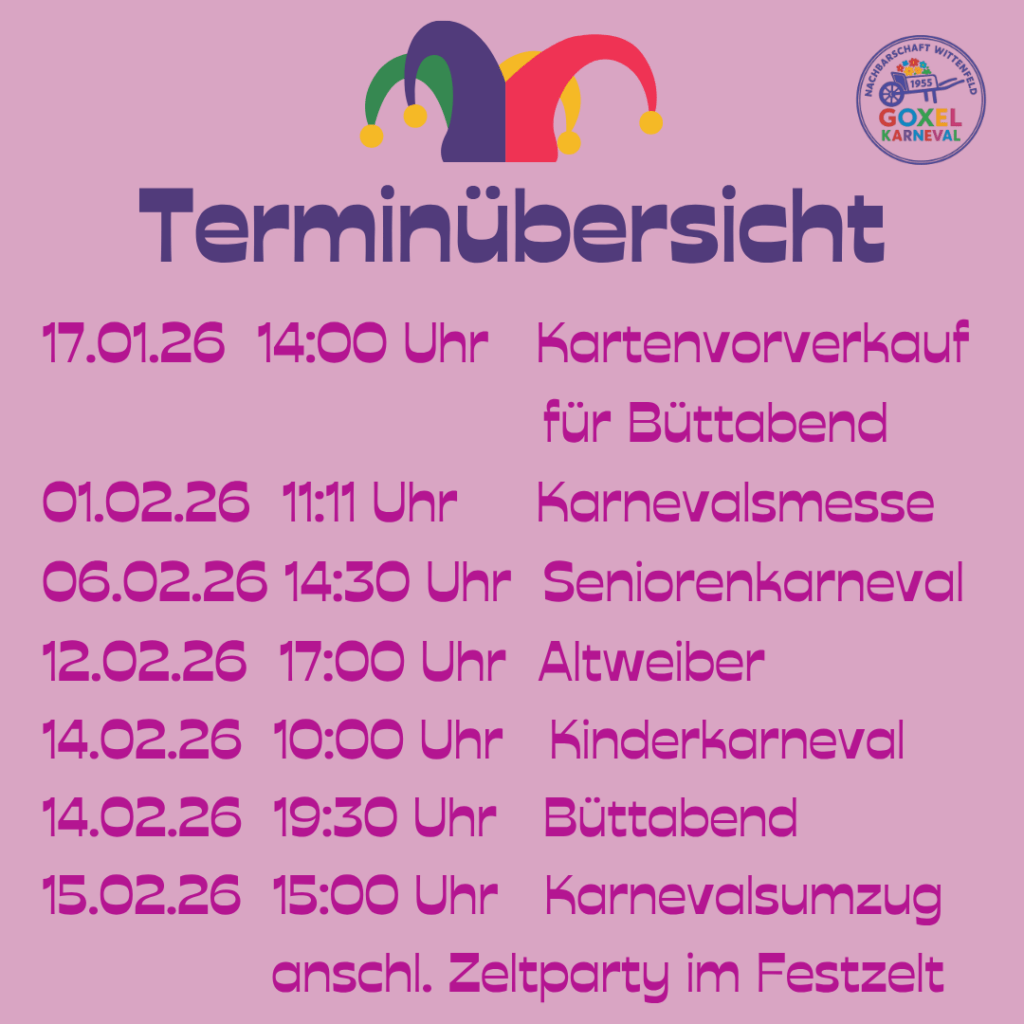 Hier ist die Terminübersicht für den Karneval in Wittenfeld 2026.